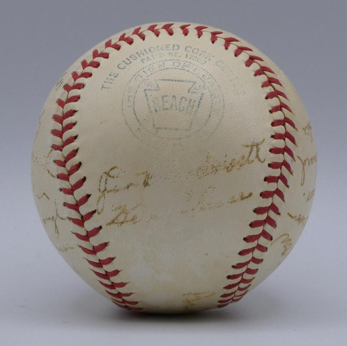 Reach Official American League baseball has been team-signed by (22) of the 1941 Washington Senators with Bucky Harris, Steve Sundra, Clyde Milan, Benny Bengough, Mickey Vernon, Dutch Leonard, Sam West, Sid Hudson, Doc Cramer, Geo Archie, Jimmy Bloodworth, Benny Bengough and (10) others.