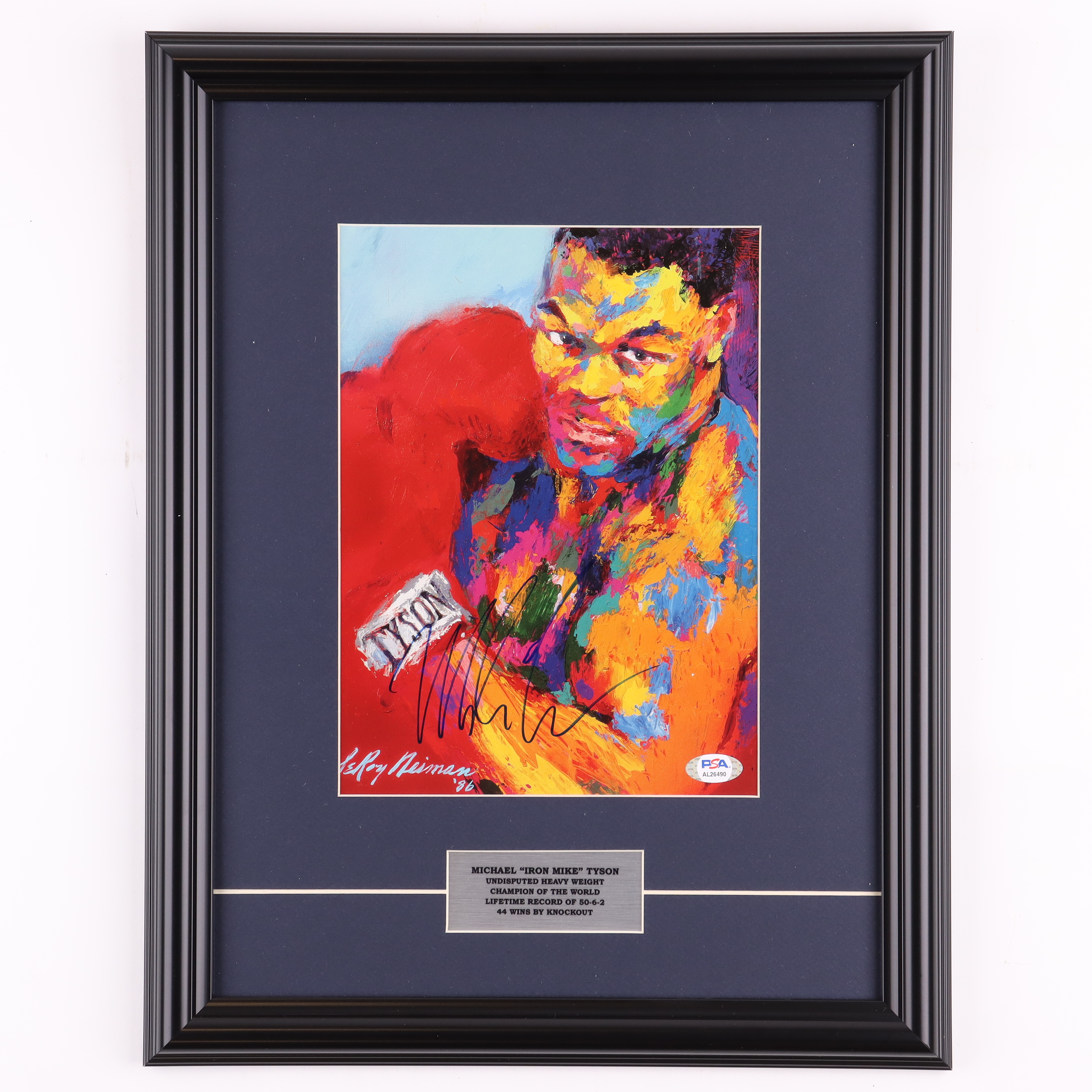 Custom framed measures 14" x 19" in size and features a print by LeRoy Neiman that has been hand-signed by Mike Tyson (HOF).