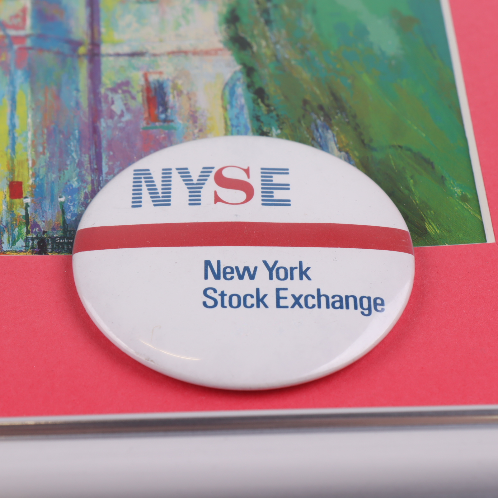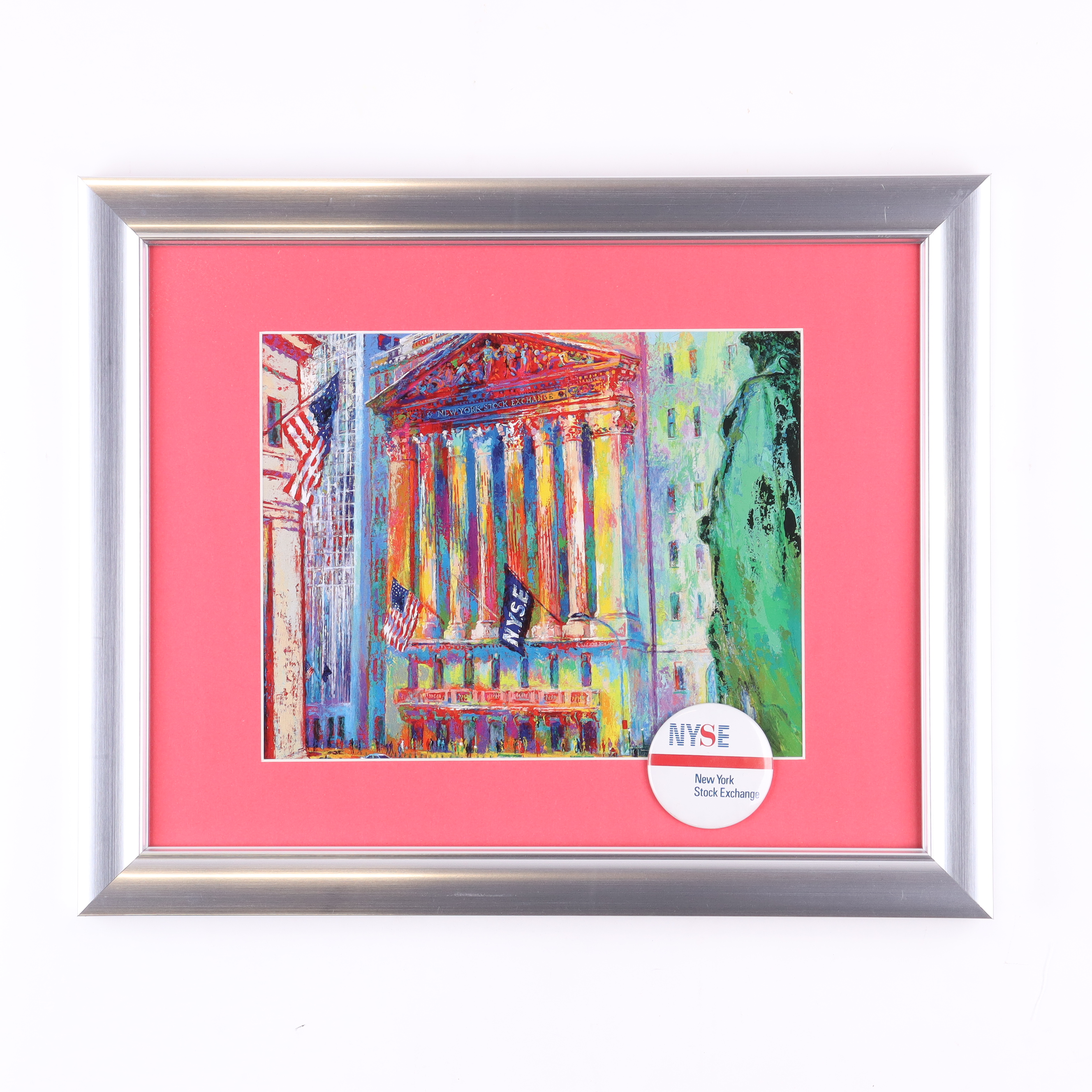 Leroy Neiman "The New York Stock Exchange" Custom Framed Print Display with 1990s Vintage Pin