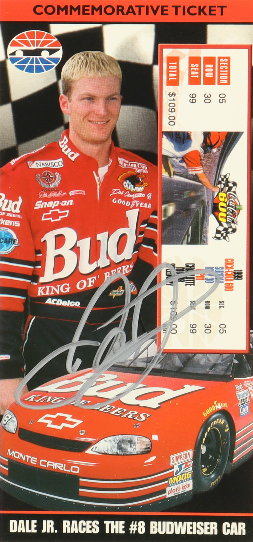 Ticket has been hand-signed by Dale Earnhardt Jr. (HOF).