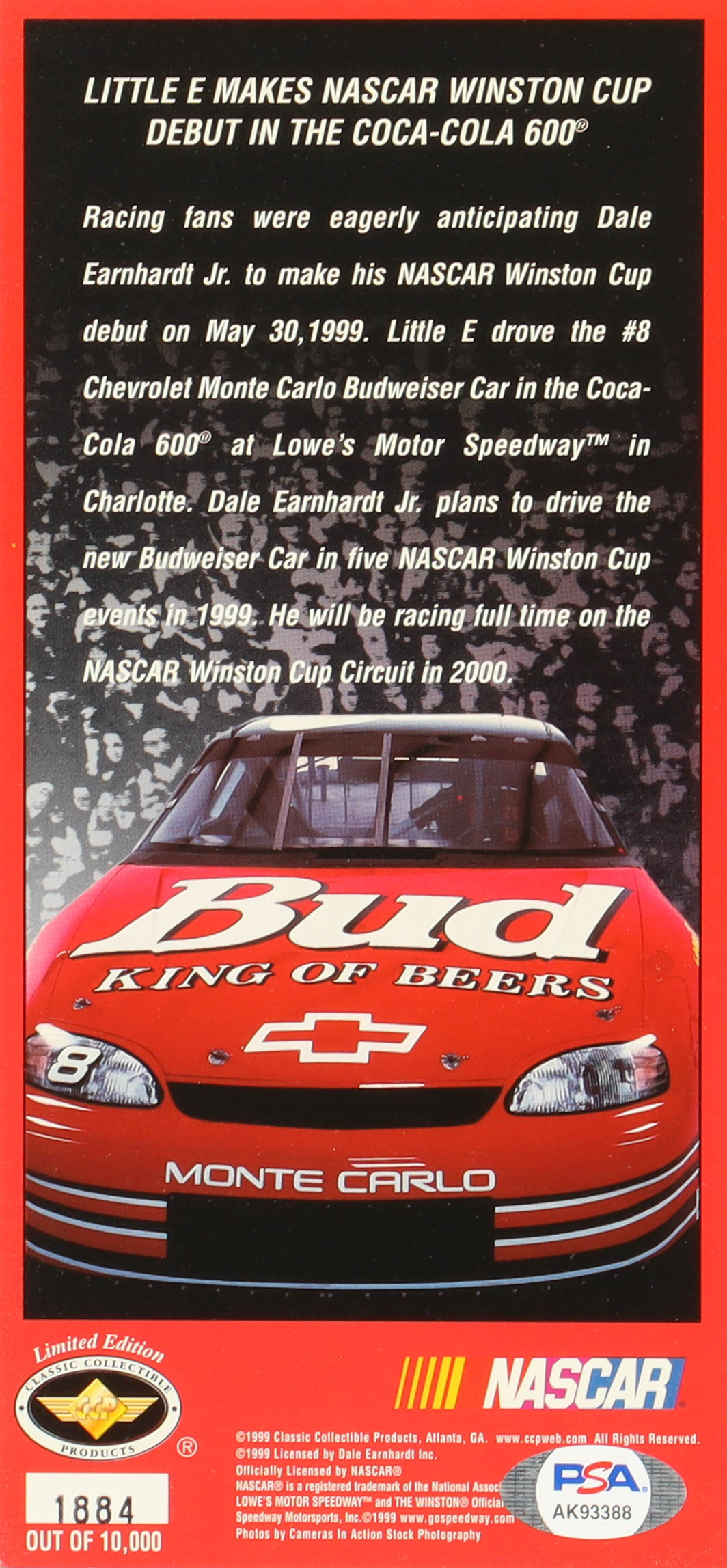 Dale Earnhardt Jr. Signed 1999 Coca-Cola 600 Commemorative Ticket (PSA)