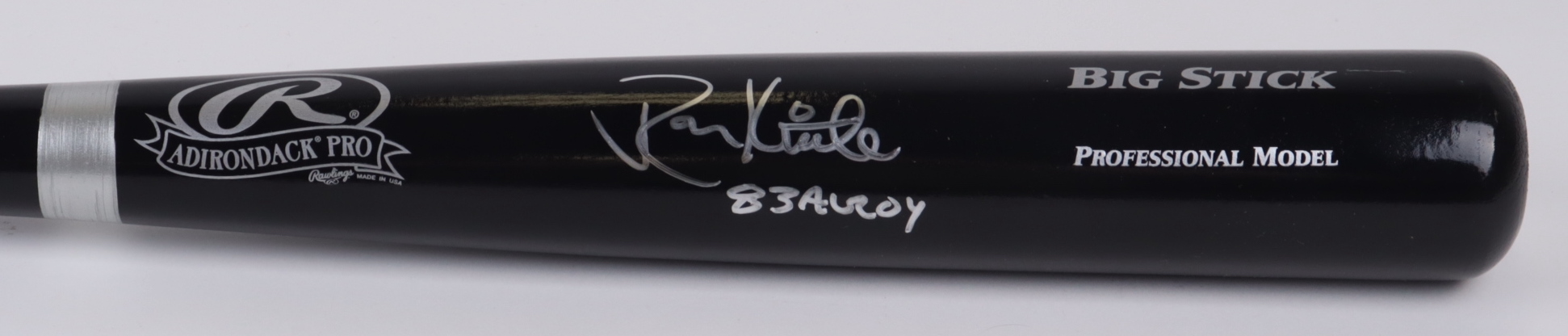 Rawlings Big Stick Adirondack Black Pro Model baseball bat. Hand-signed and inscribed by Ron Kittle (Chicago White Sox.).