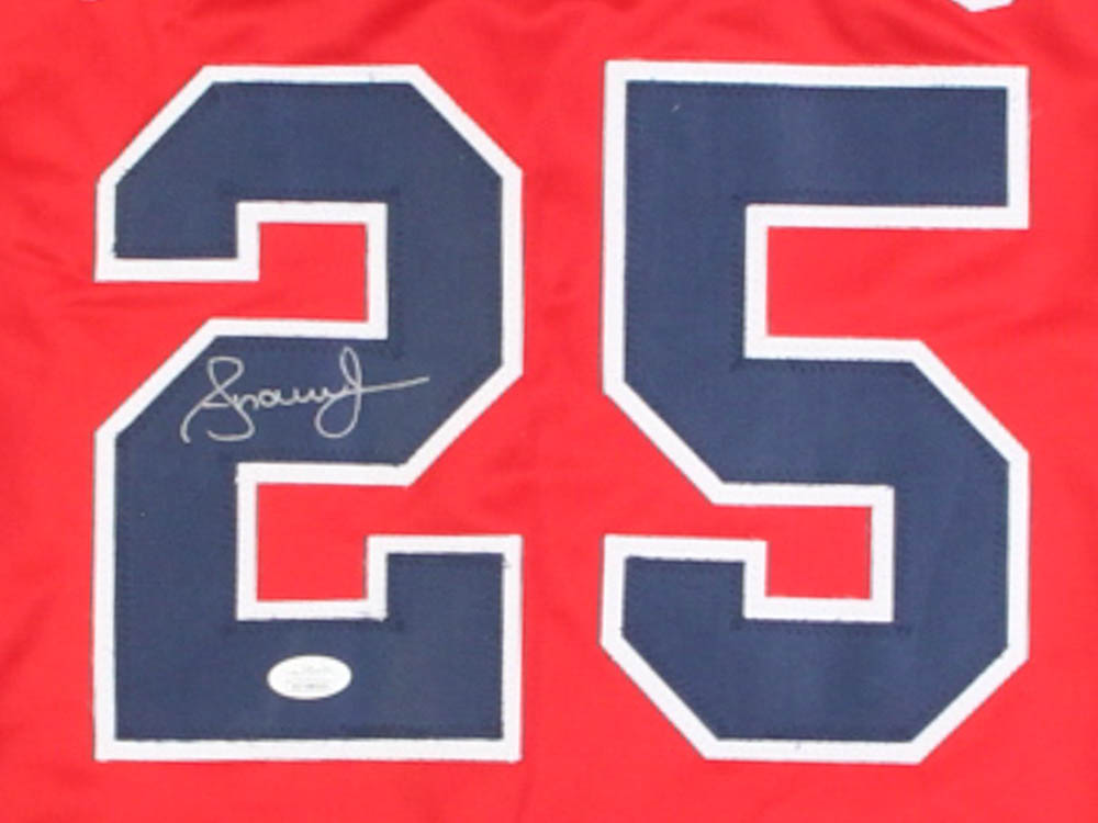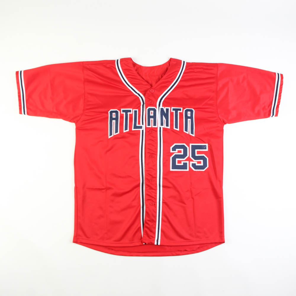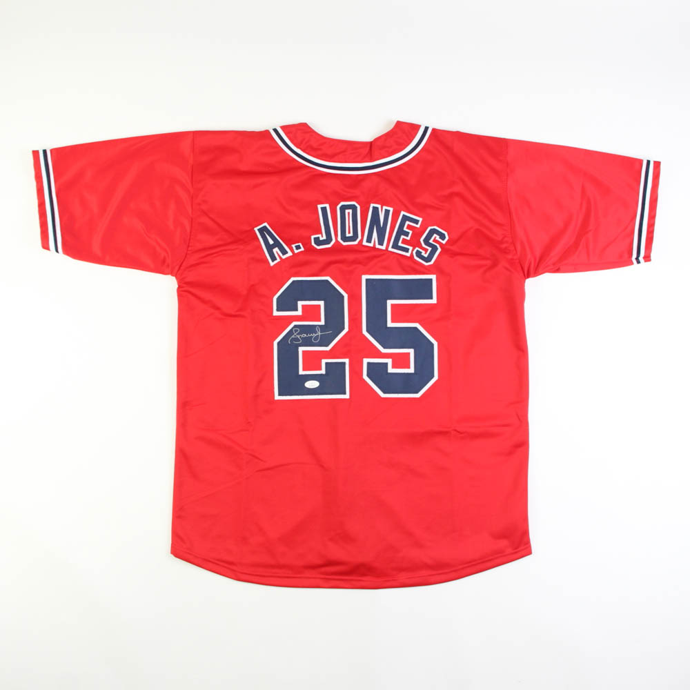 Custom on-field style jersey. Everything is sewn on, size XL. Hand-signed by Andruw Jones.