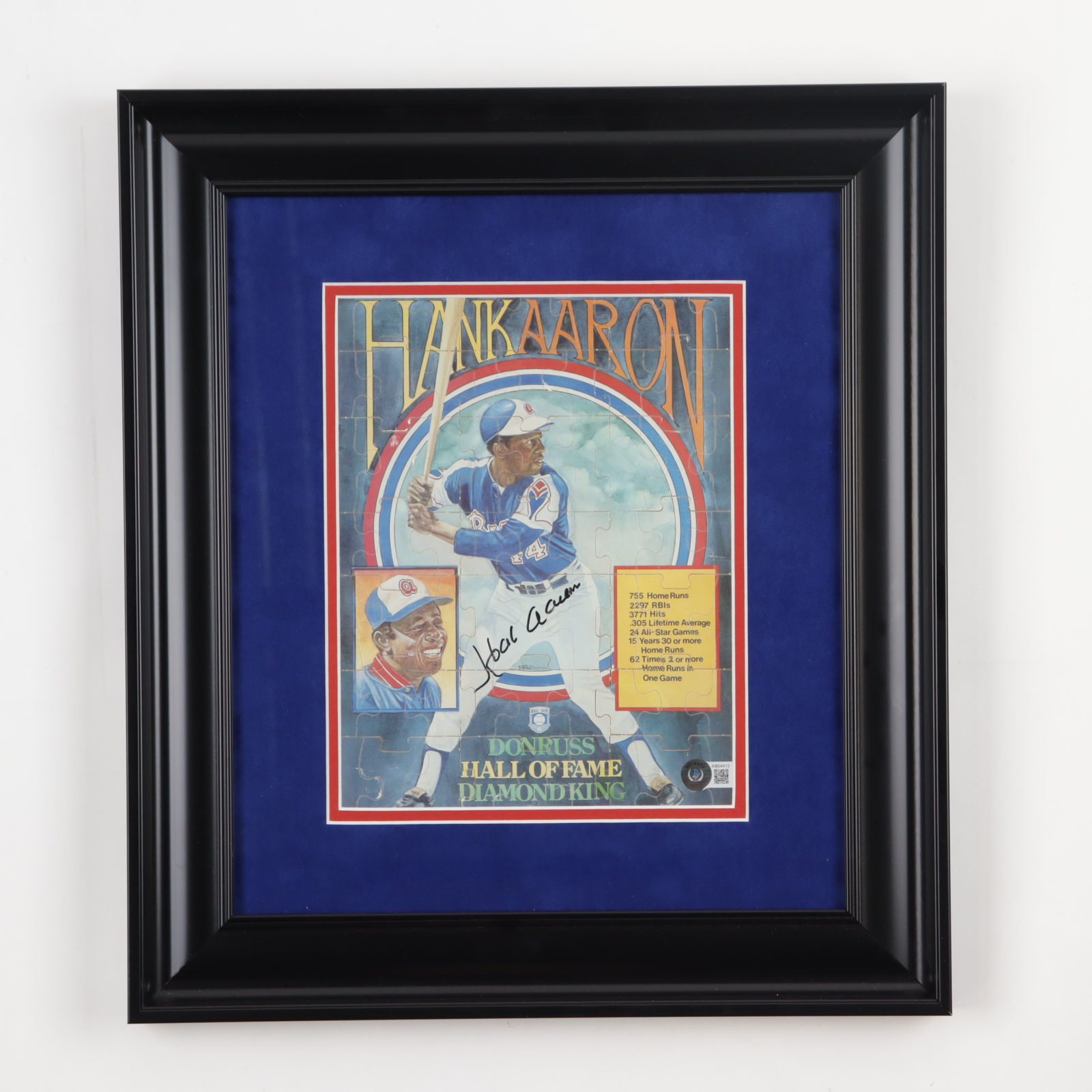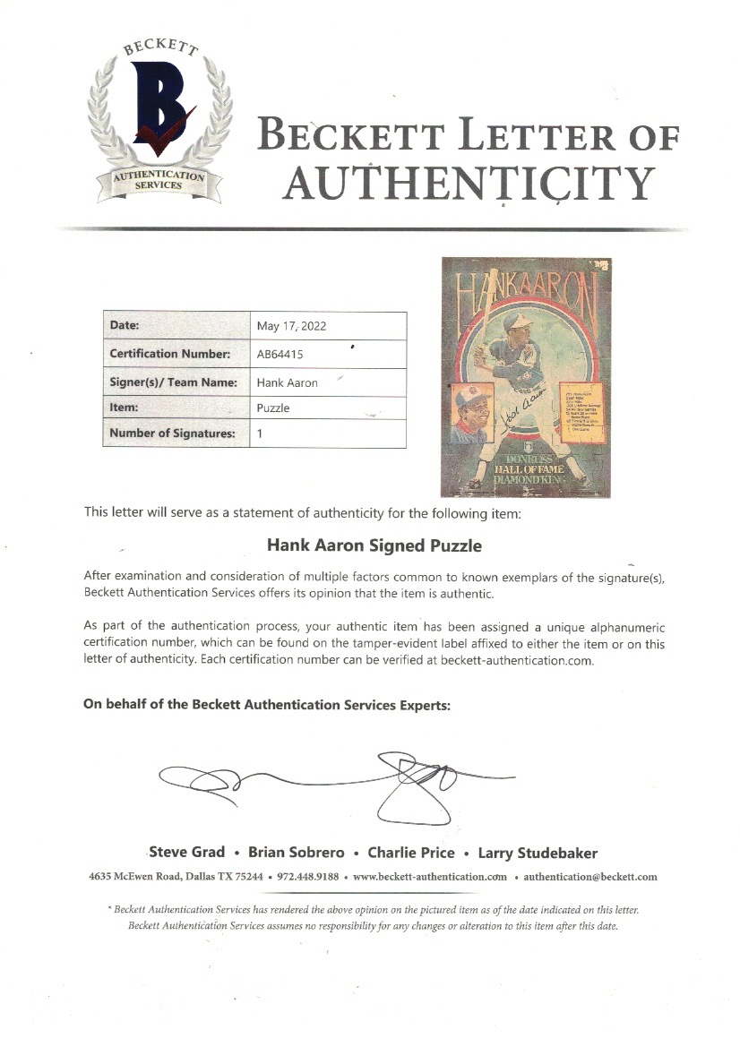 Hank Aaron Signed Custom Framed Jigsaw Puzzle (Beckett)