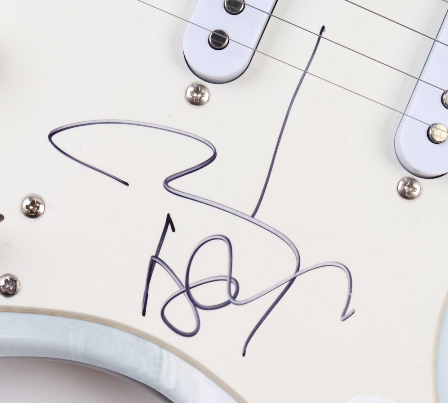Custom electric guitar measures approximately 39" in length and has been hand-signed on the pickguard by Johnny Depp.