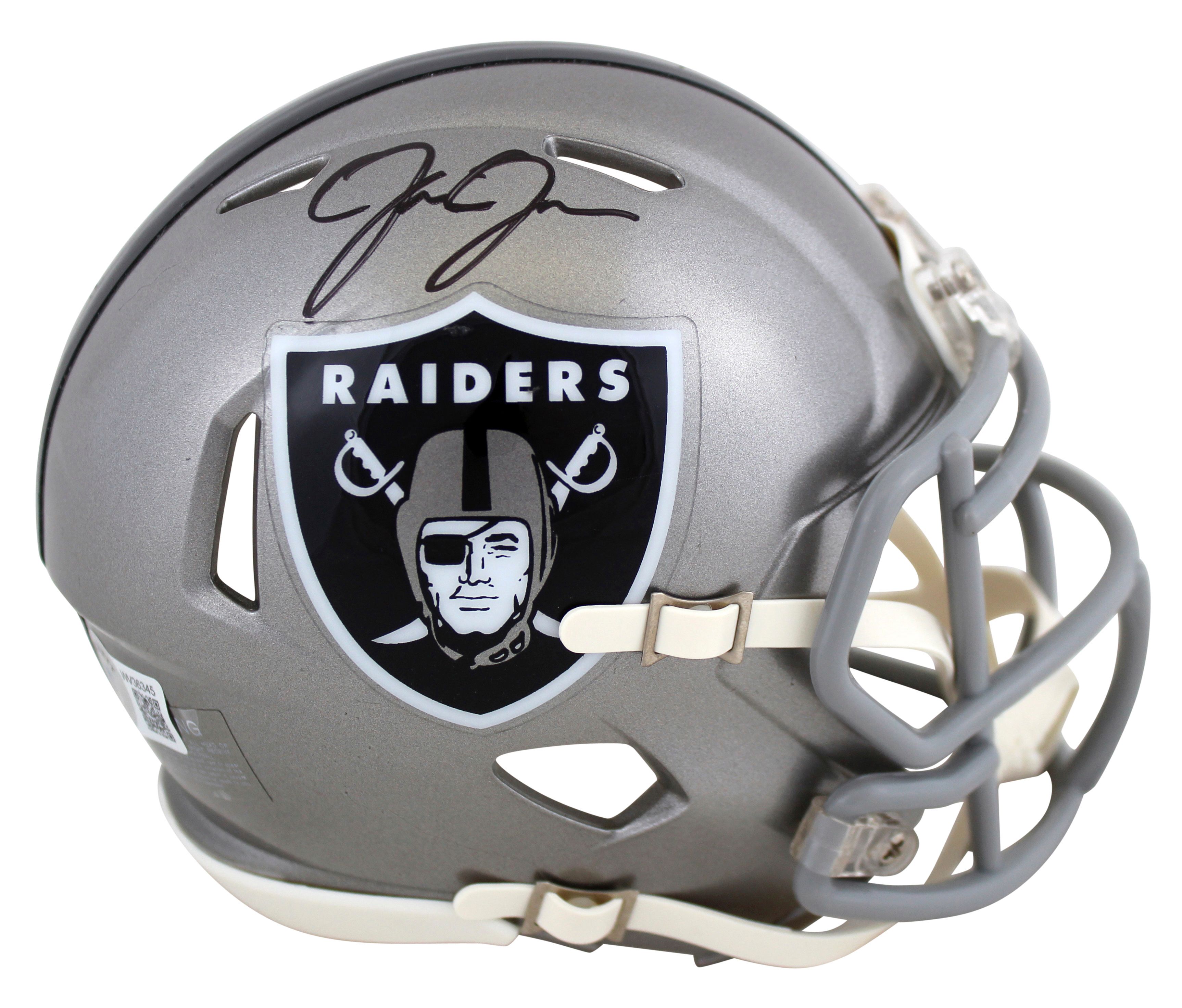 Riddell Las Vegas Raiders Flash Alternate Speed mini helmet. Hand-signed by Josh Jacobs.