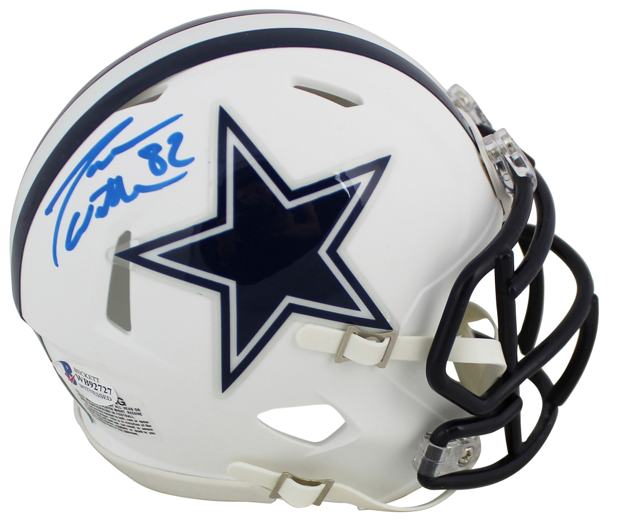 Riddell Dallas Cowboys Matte White Speed mini helmet. Helmet has been hand-signed by Jason Witten.