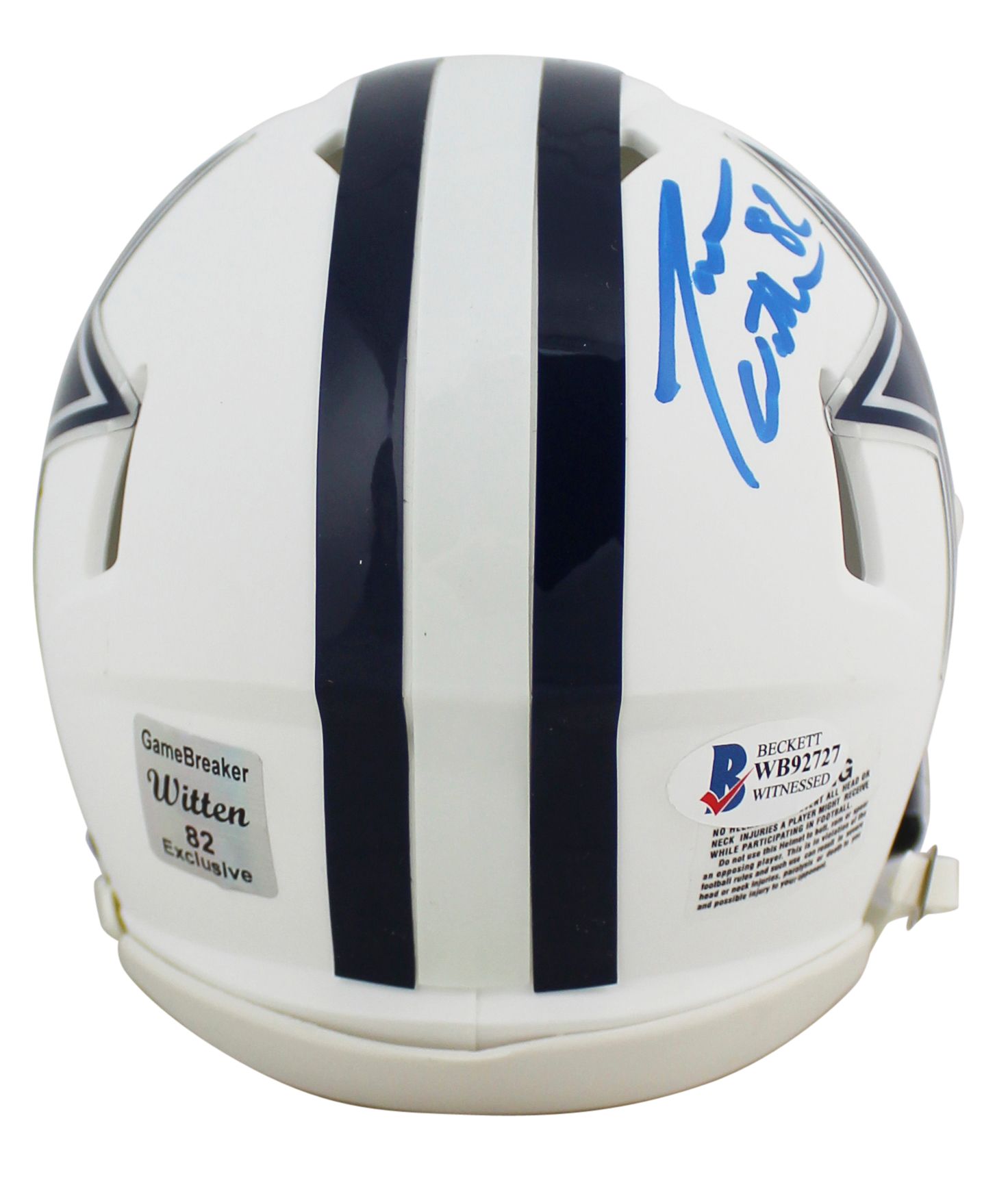 The lot / autograph(s) includes an official Beckett Authentication Services serially numbered hologram and matching COA as well as an official Jason Witten player hologram for authenticity purposes. The signing of this item was witnessed by Beckett.