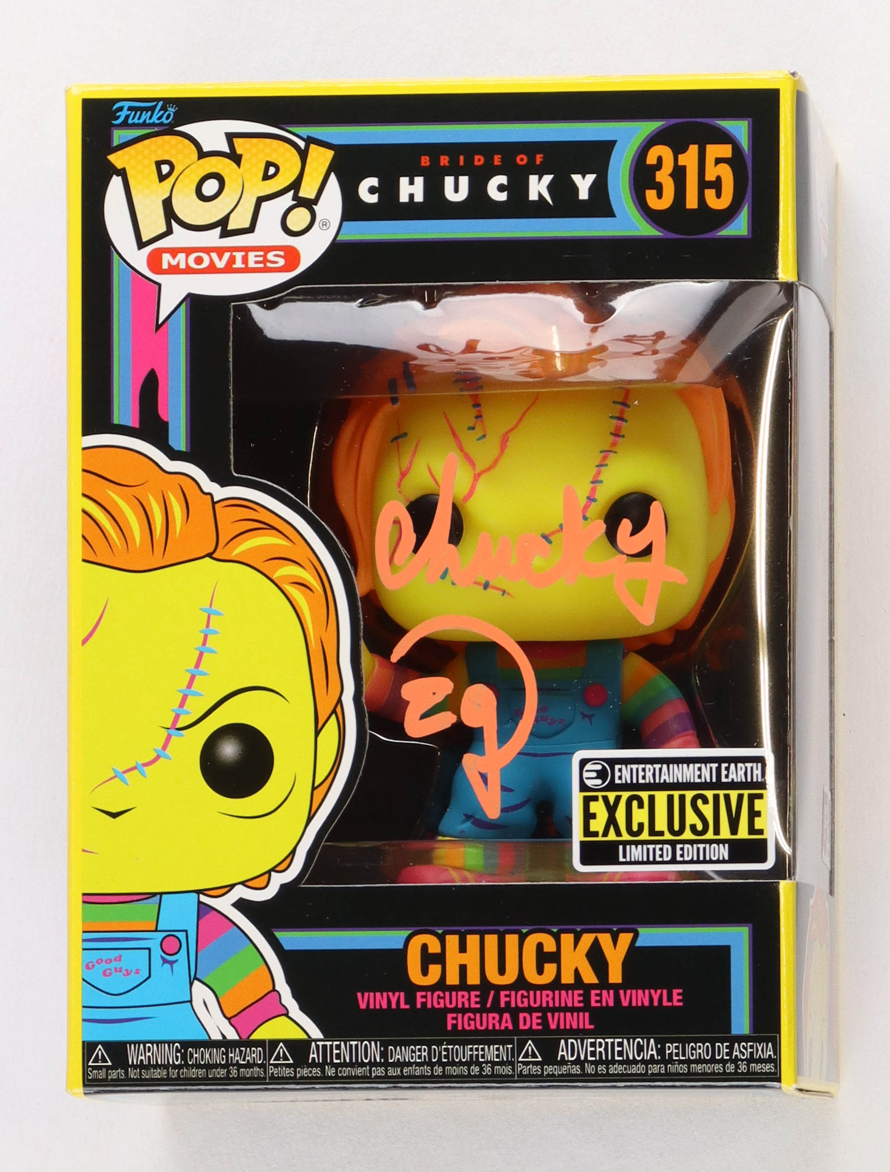 Funko Pop! Vinyl Figure measures approximately 4" tall and has been hand-signed and inscribed on the packaging by Ed Gale (Chucky).