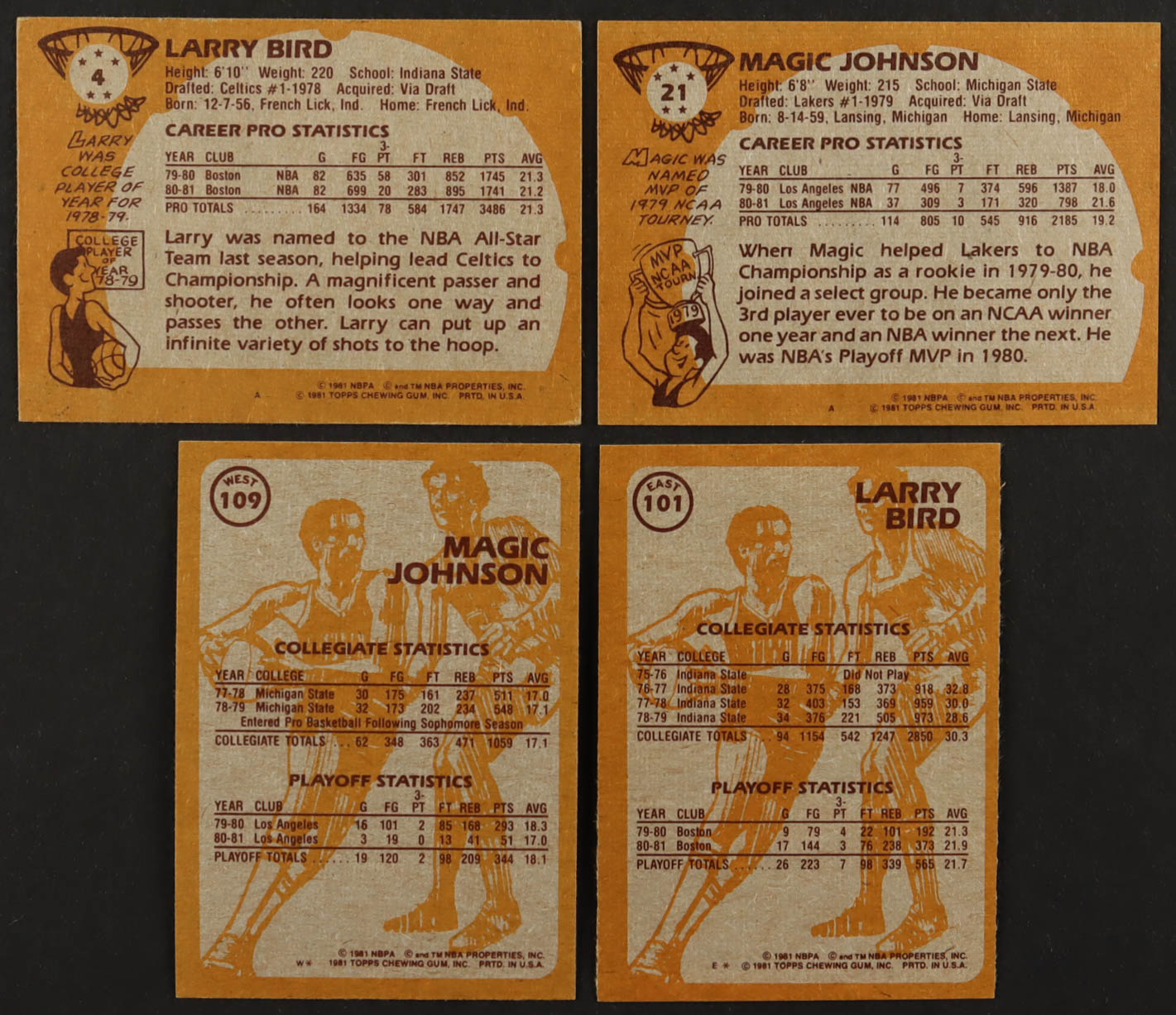 1981-82 Topps Basketball Complete Set of (198) Cards with Larry Bird #4, Magic Johnson #21, Magic Johnson #W109 SA, Larry Bird #E101 SA