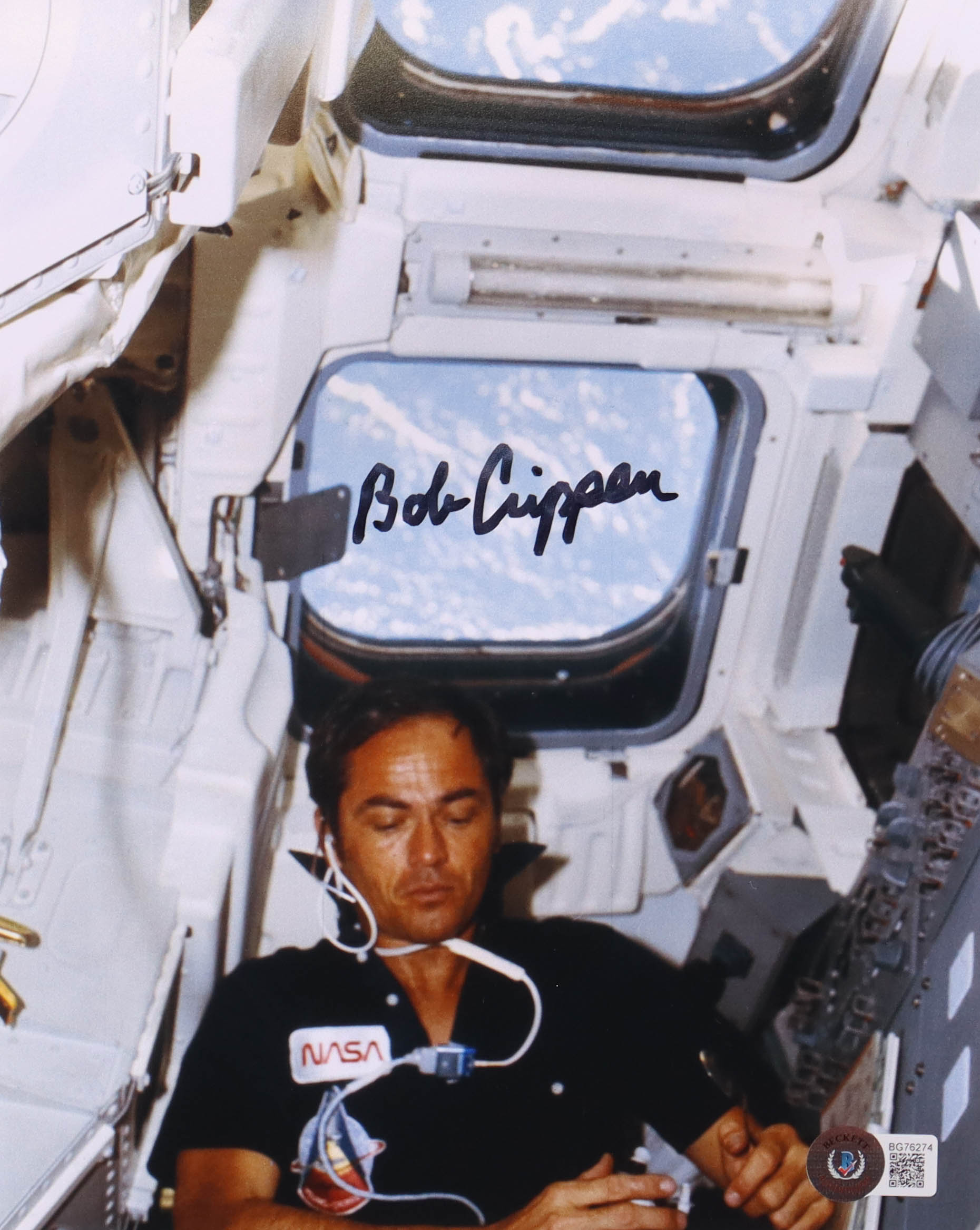 Photo measures approximately 8" x 10" in size. Hand-signed by Bob Crippen.