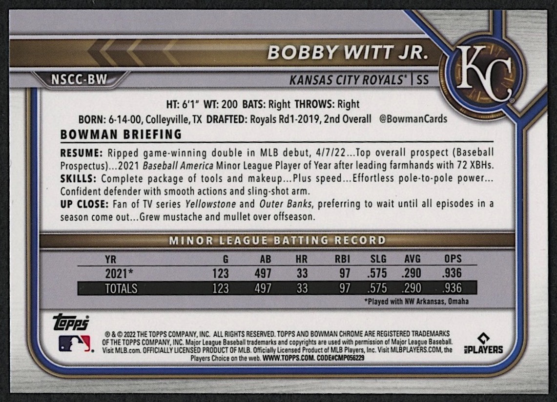 Bobby Witt Jr. 2022 Bowman Chrome The National NSCC #NSCC-BW RC