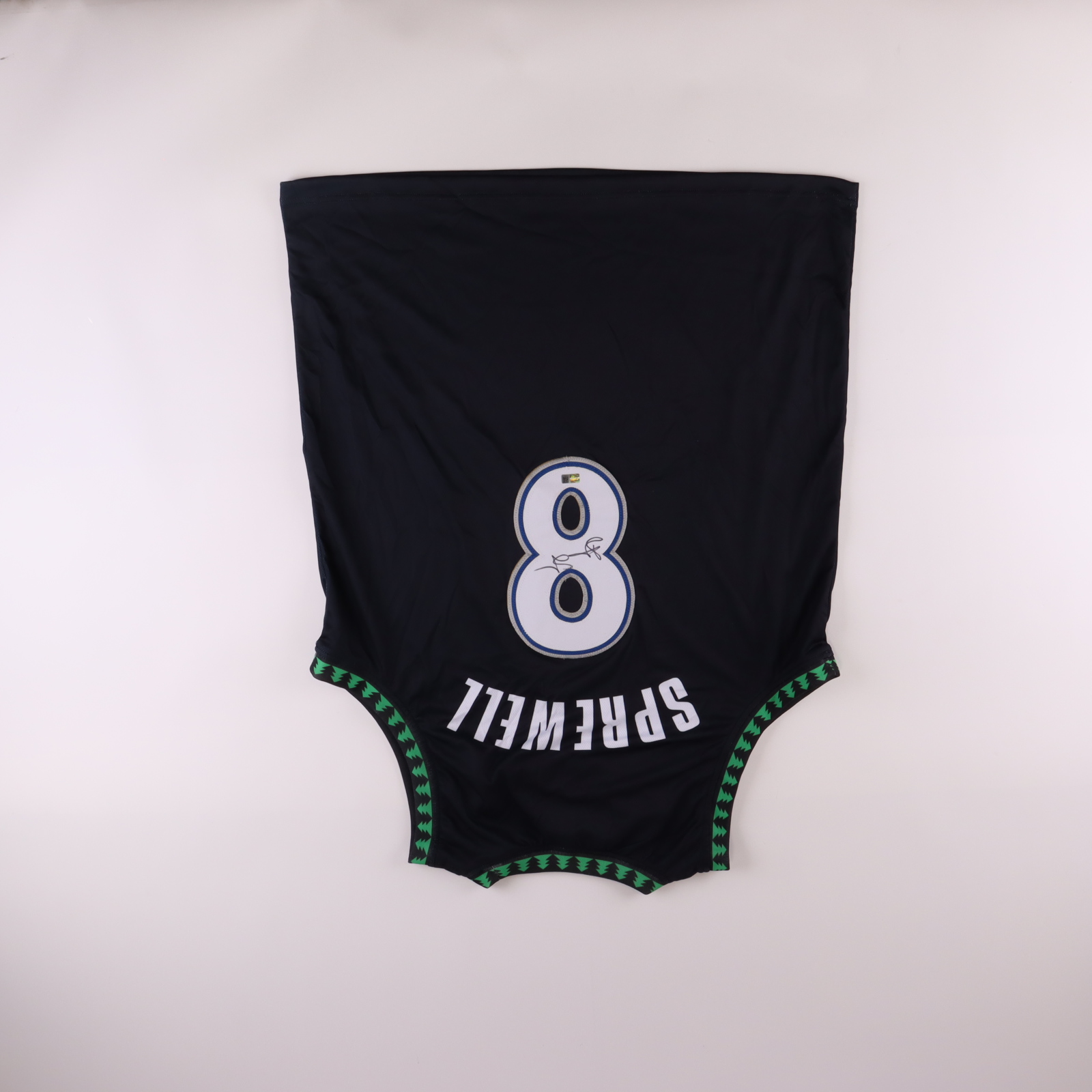 Custom on-court style jersey. Everything is sewn on, size XL. Hand-signed by Latrell Sprewell.