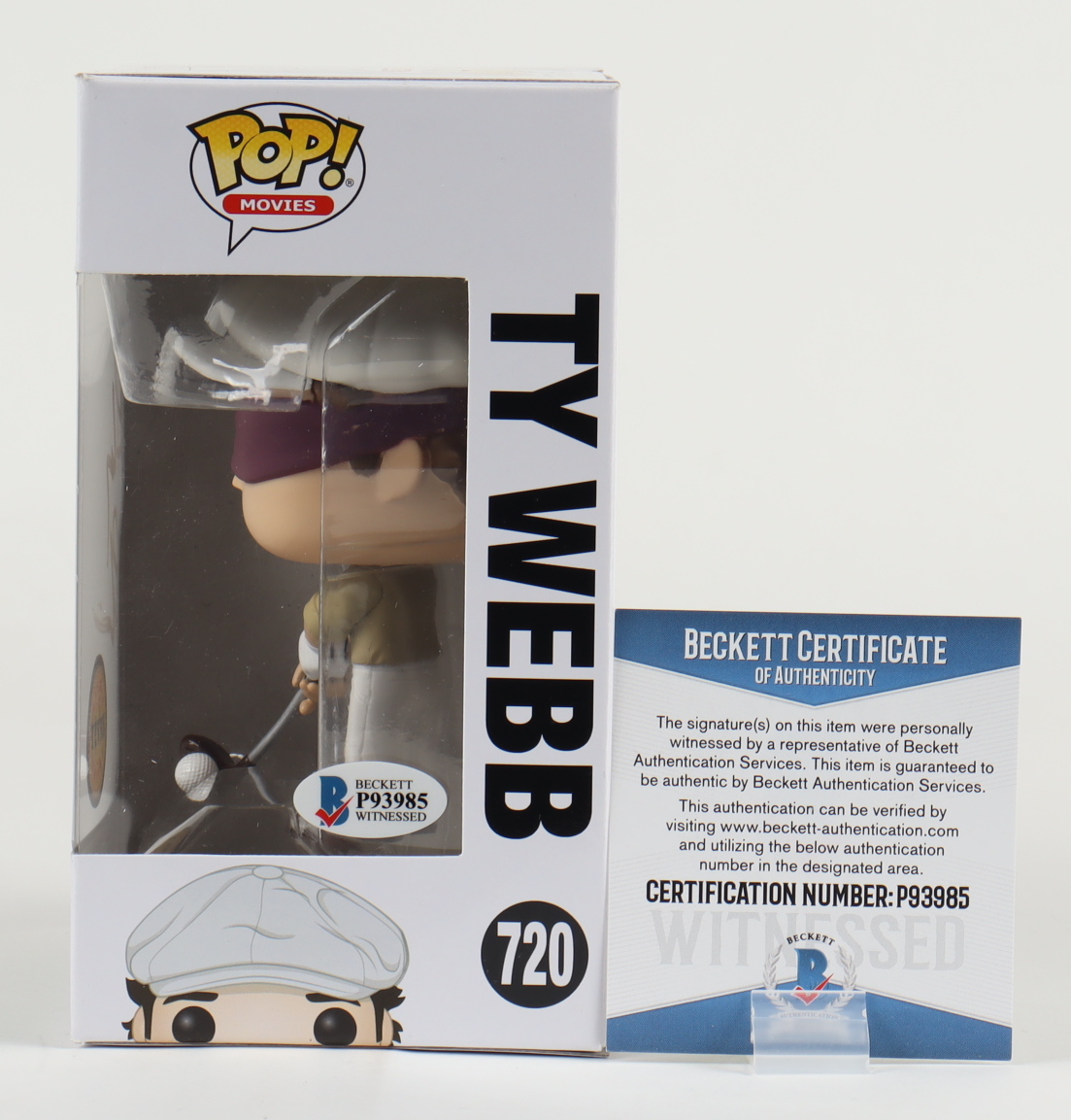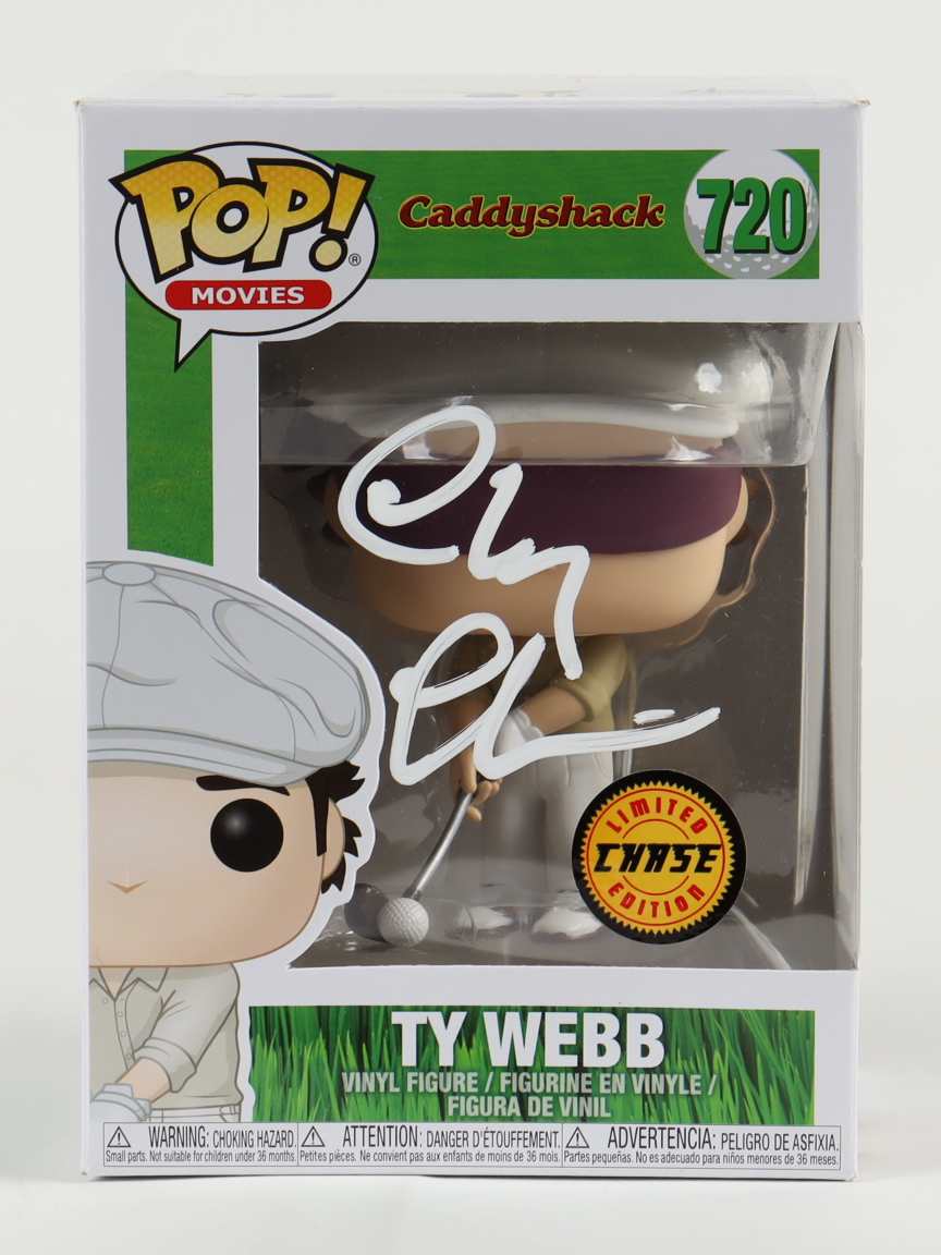 Funko Pop! vinyl figure measures approximately 4" in height and has been hand-signed on the packaging by Chevy Chase (Ty Webb).