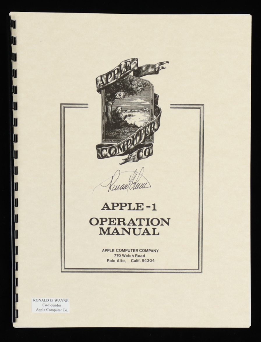 "Apple-1 Operation Manual" paperback book has been hand-signed on the front cover by Ronald G. Wayne.