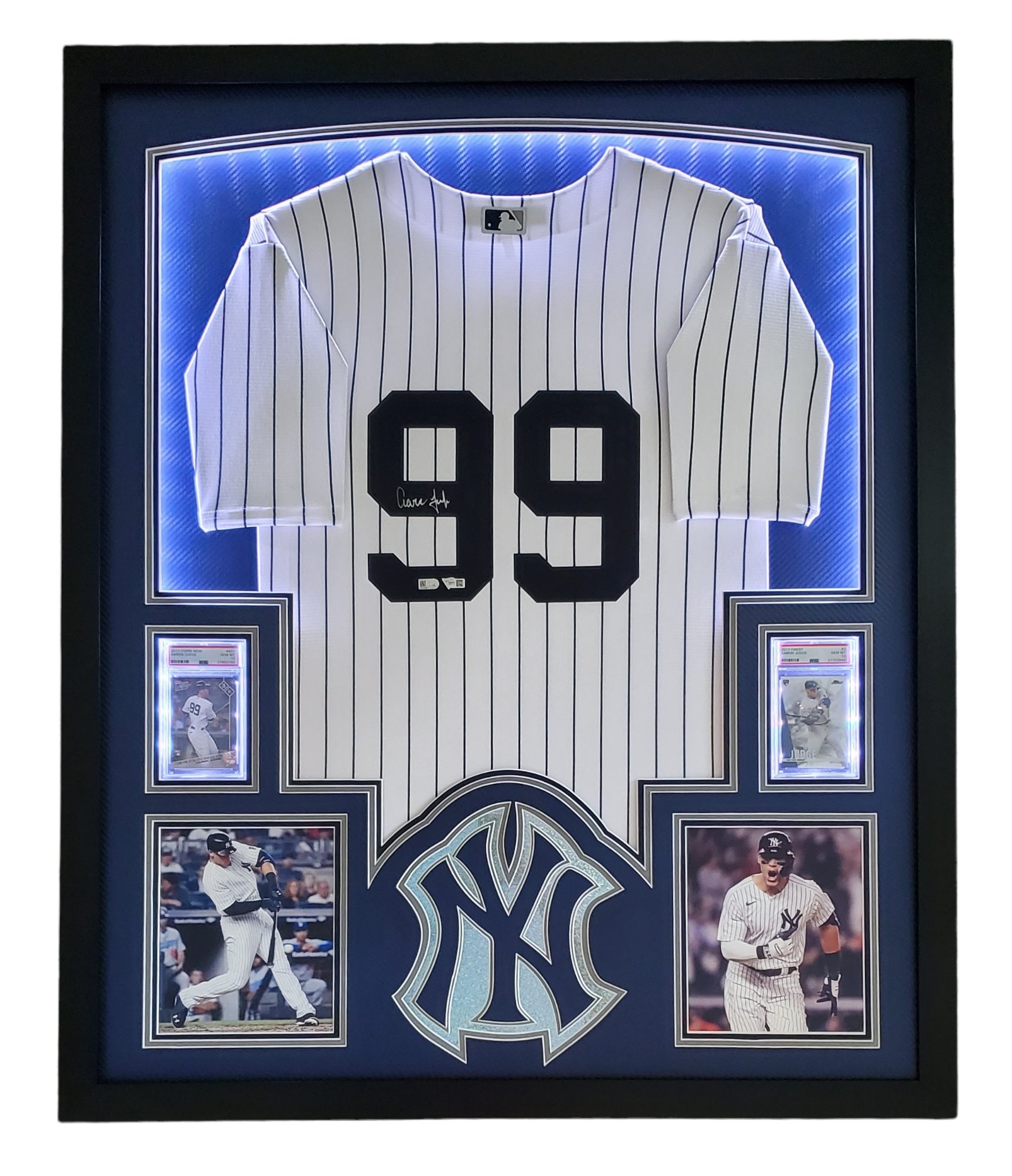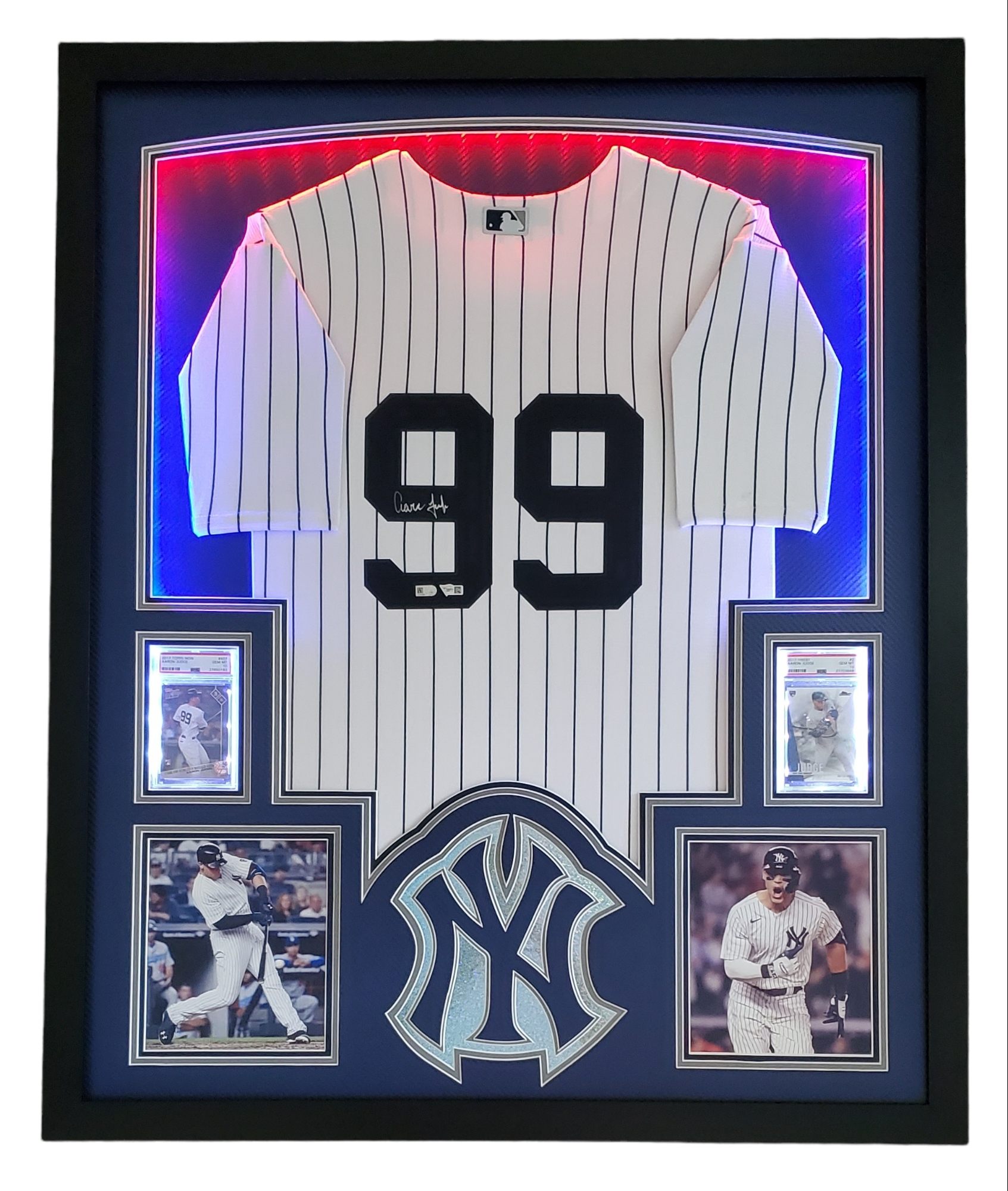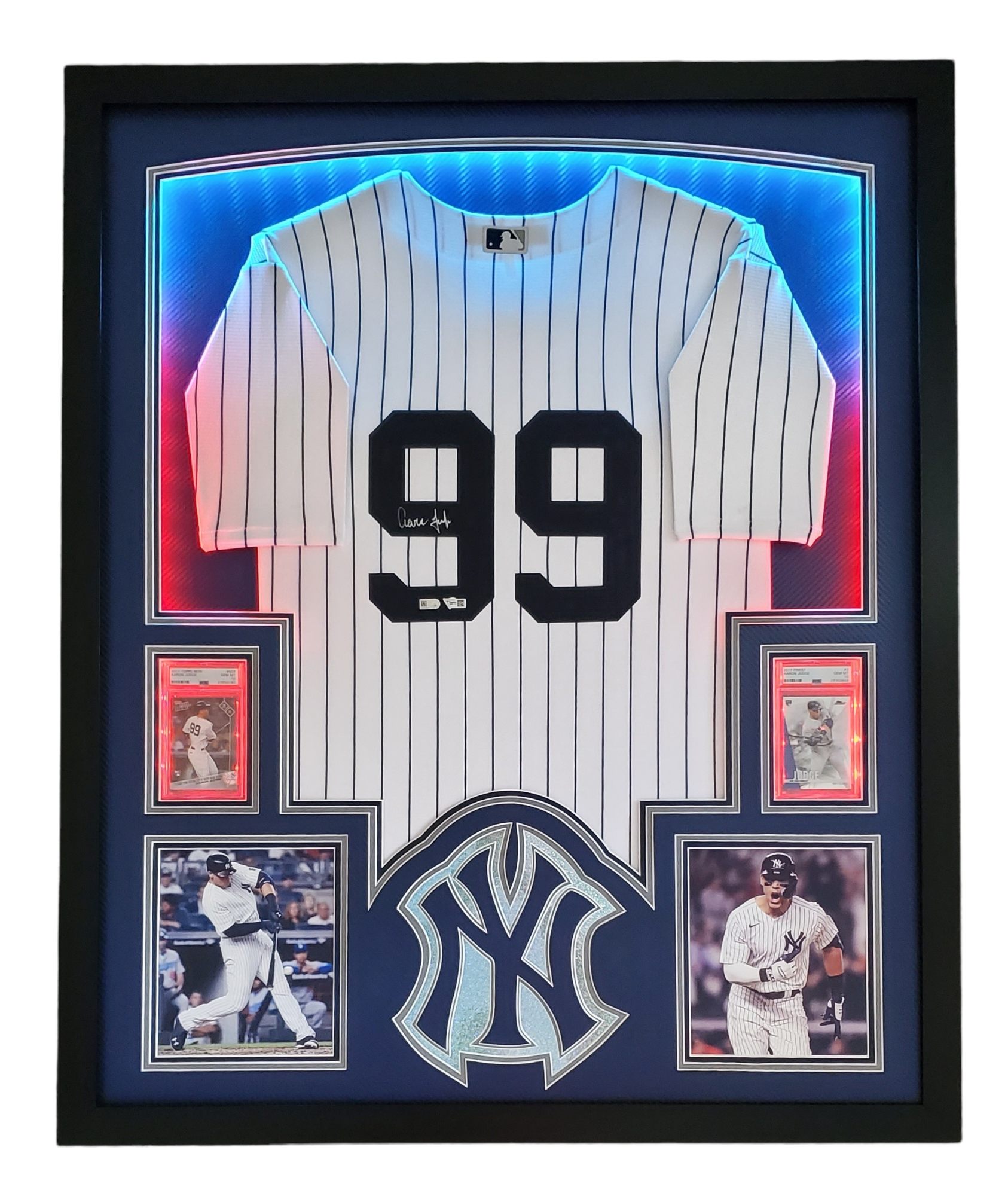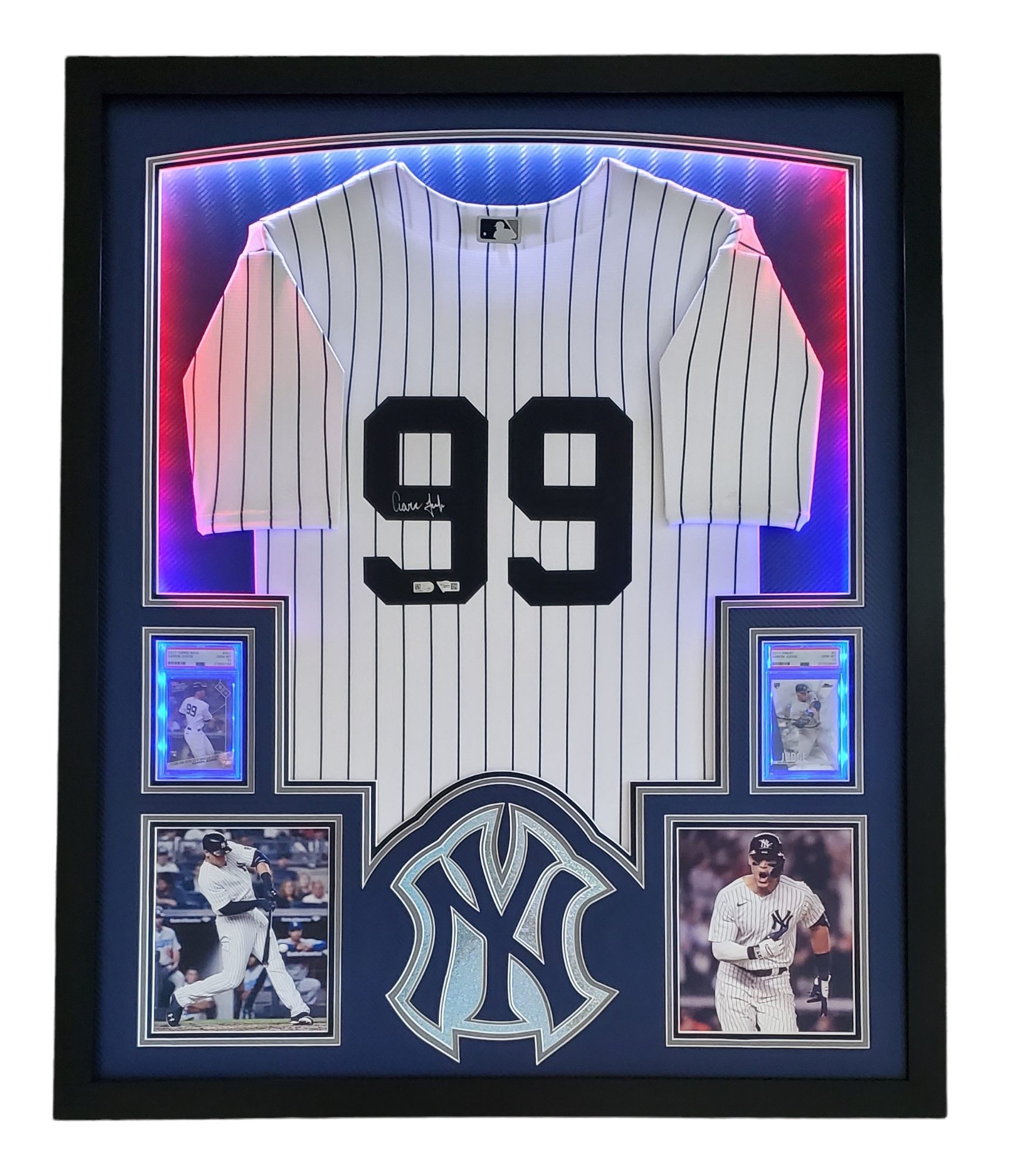 Custom display measures 33" x 44" in size and features a jersey that has been hand-signed by Aaron Judge. Includes: