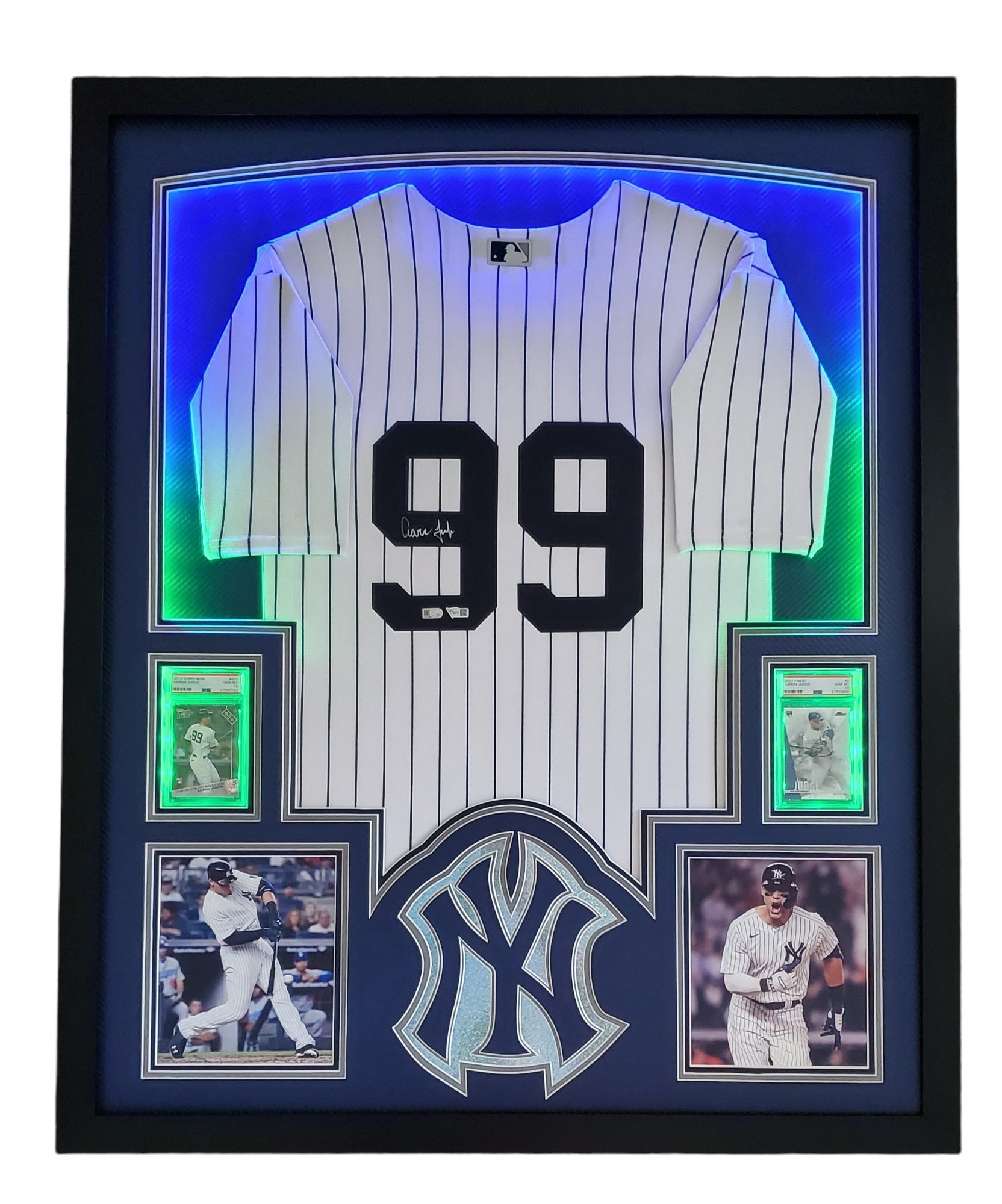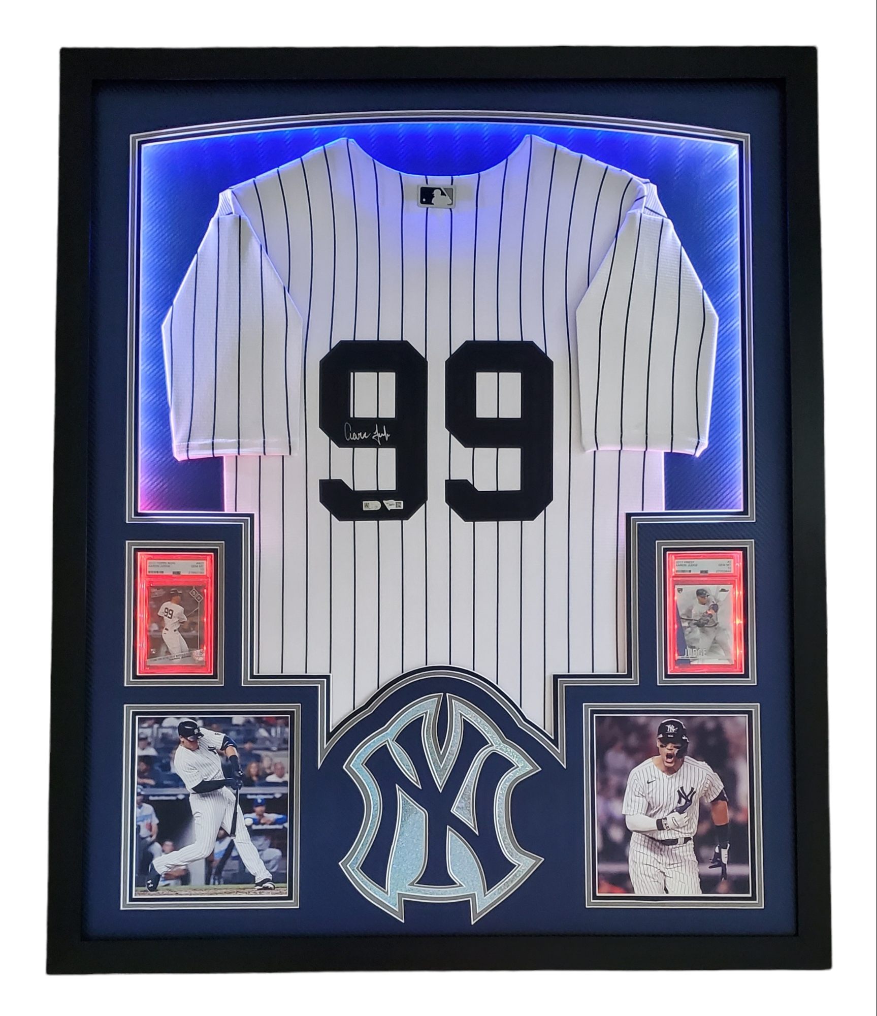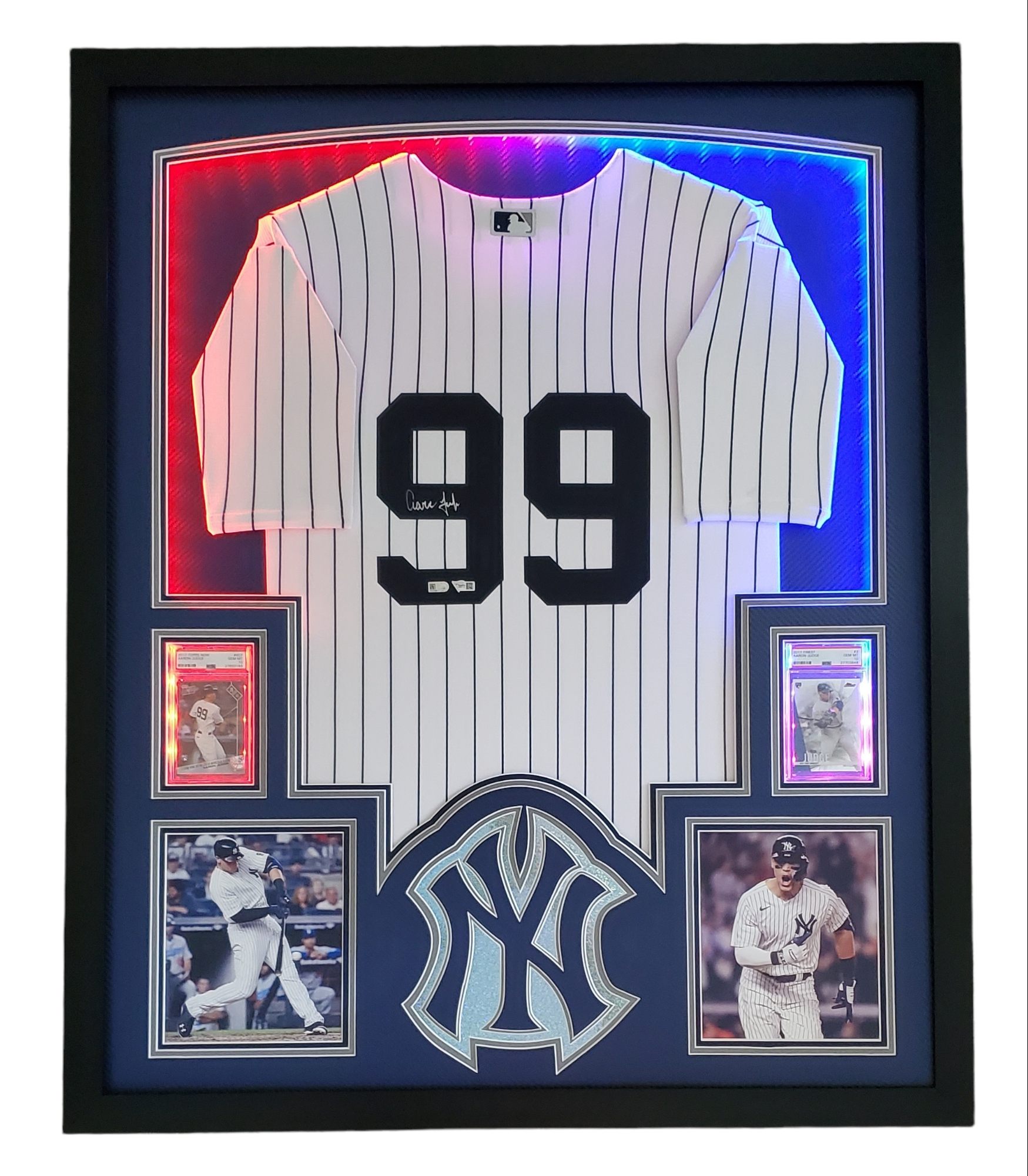 Custom display measures 33" x 44" in size and features a jersey that has been hand-signed by Aaron Judge. Includes:
