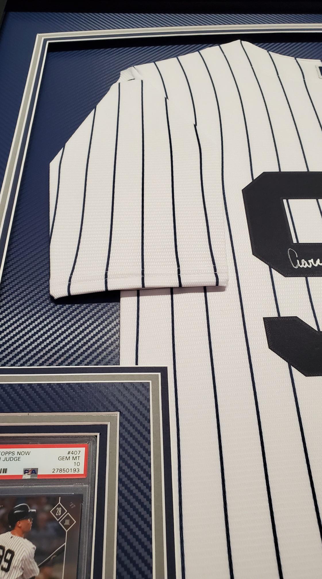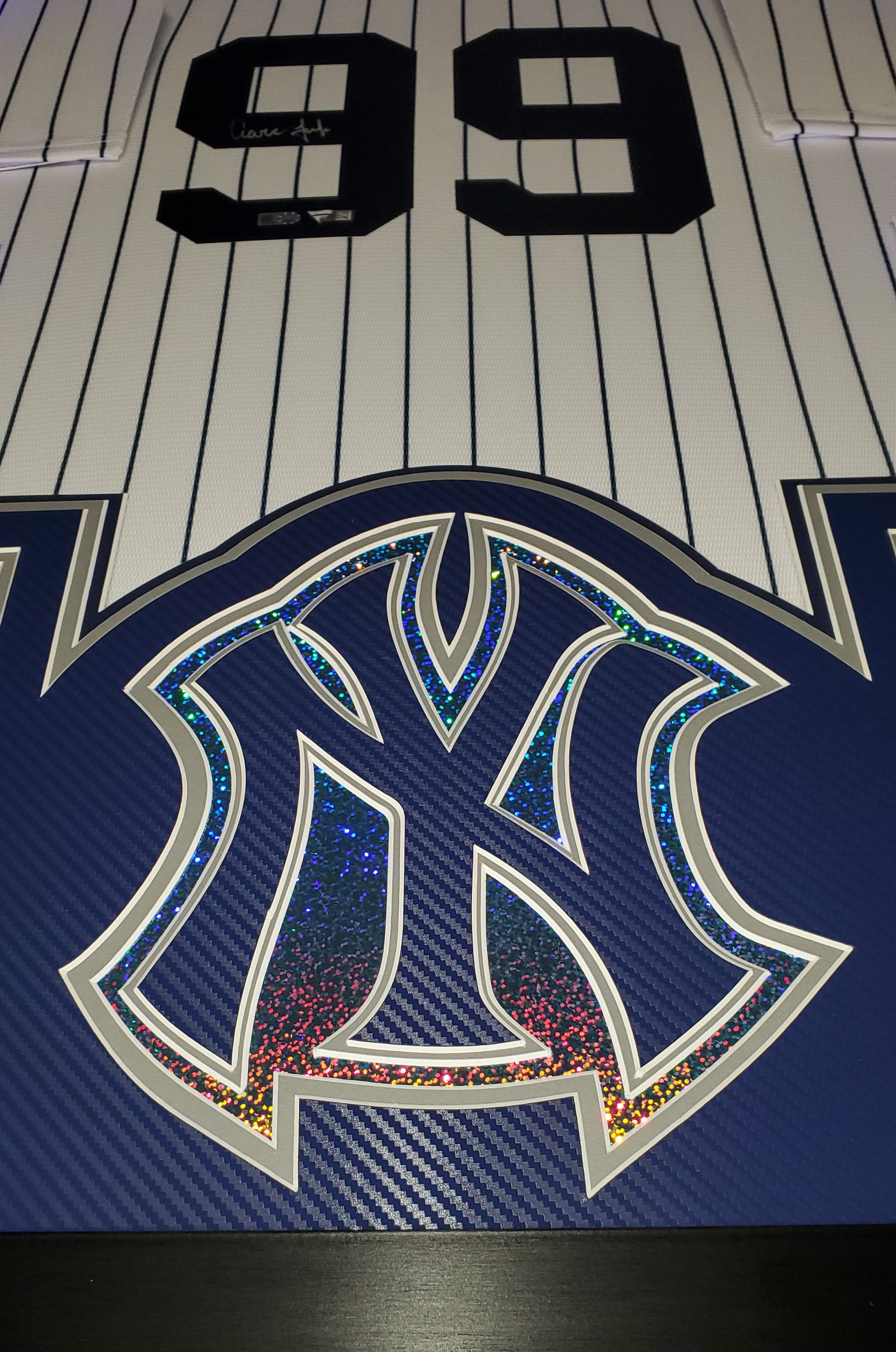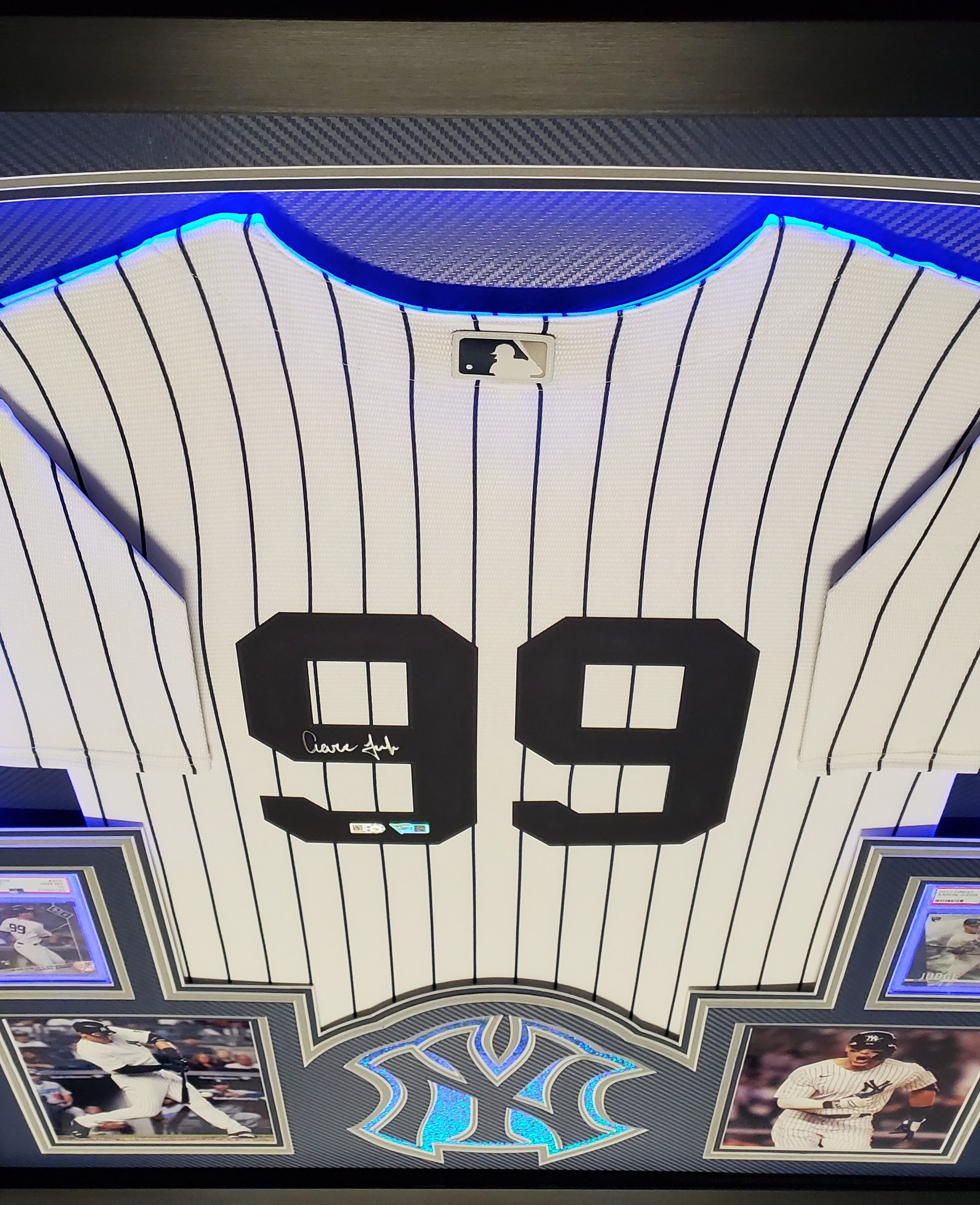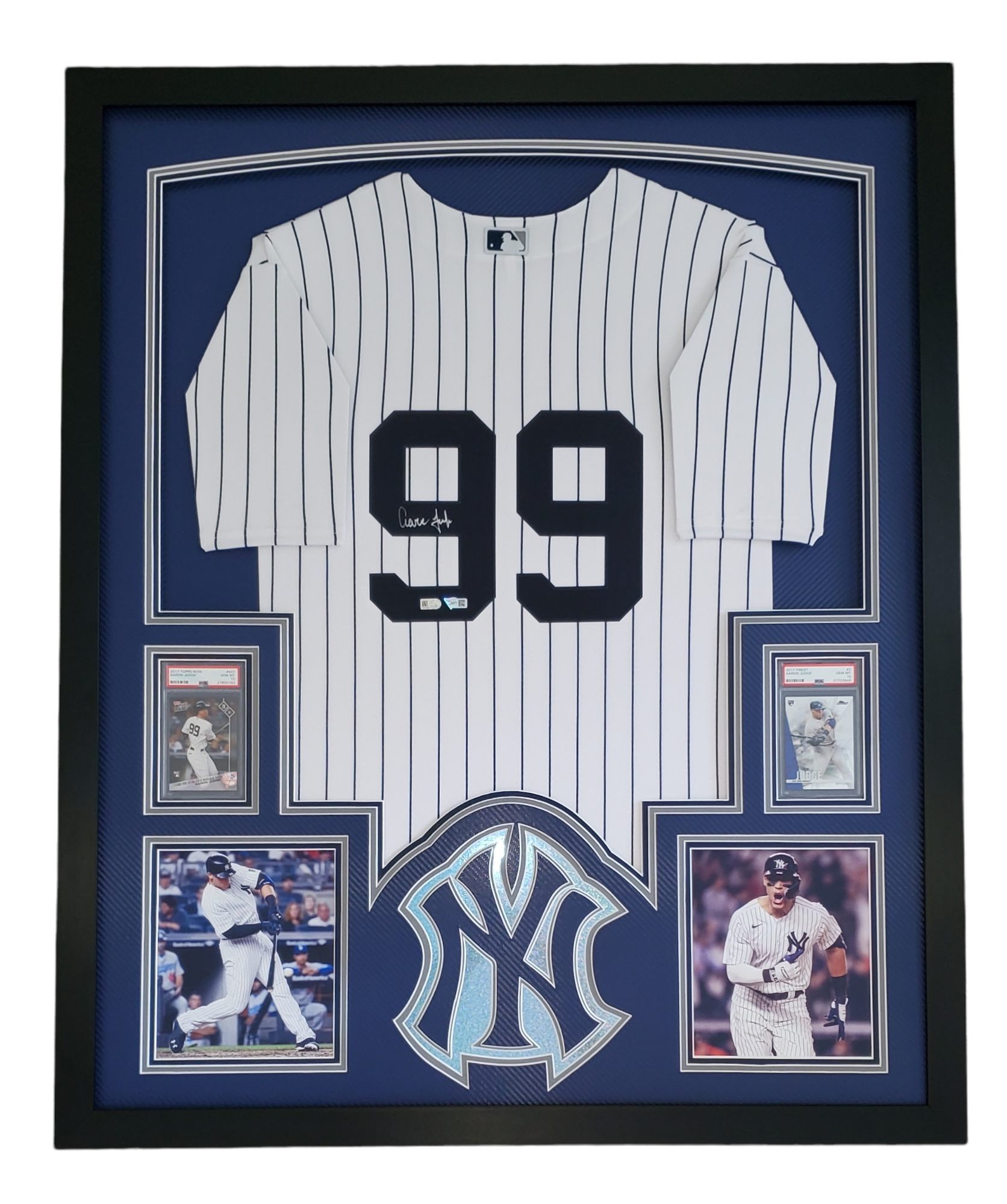 Custom display measures 33" x 44" in size and features a jersey that has been hand-signed by Aaron Judge. Includes: