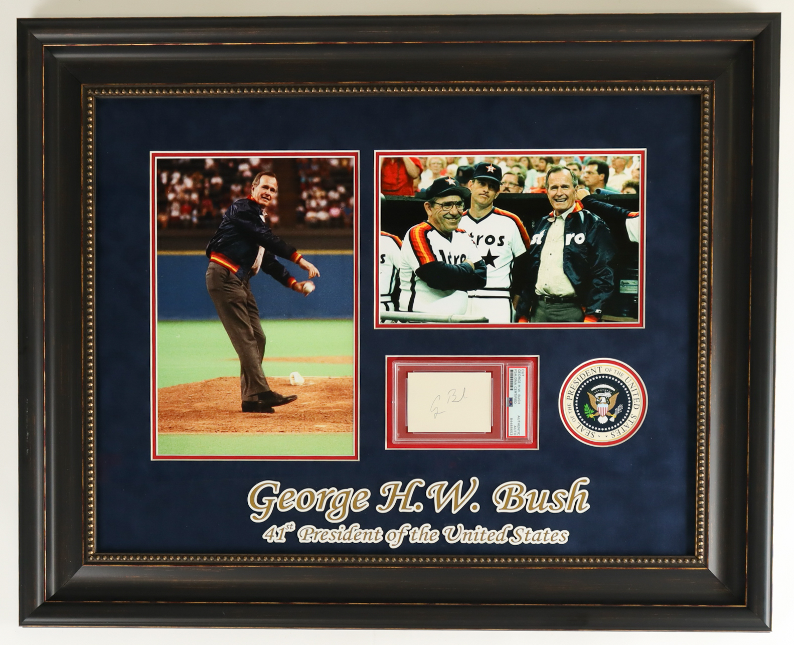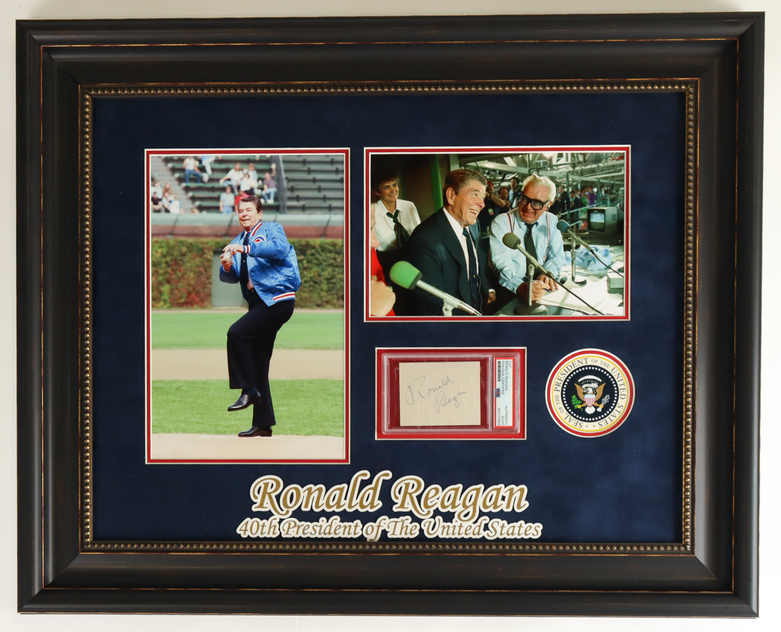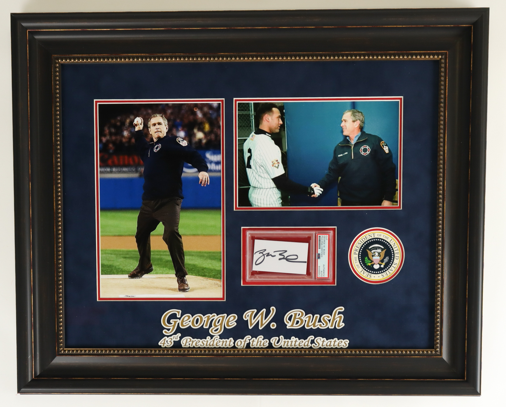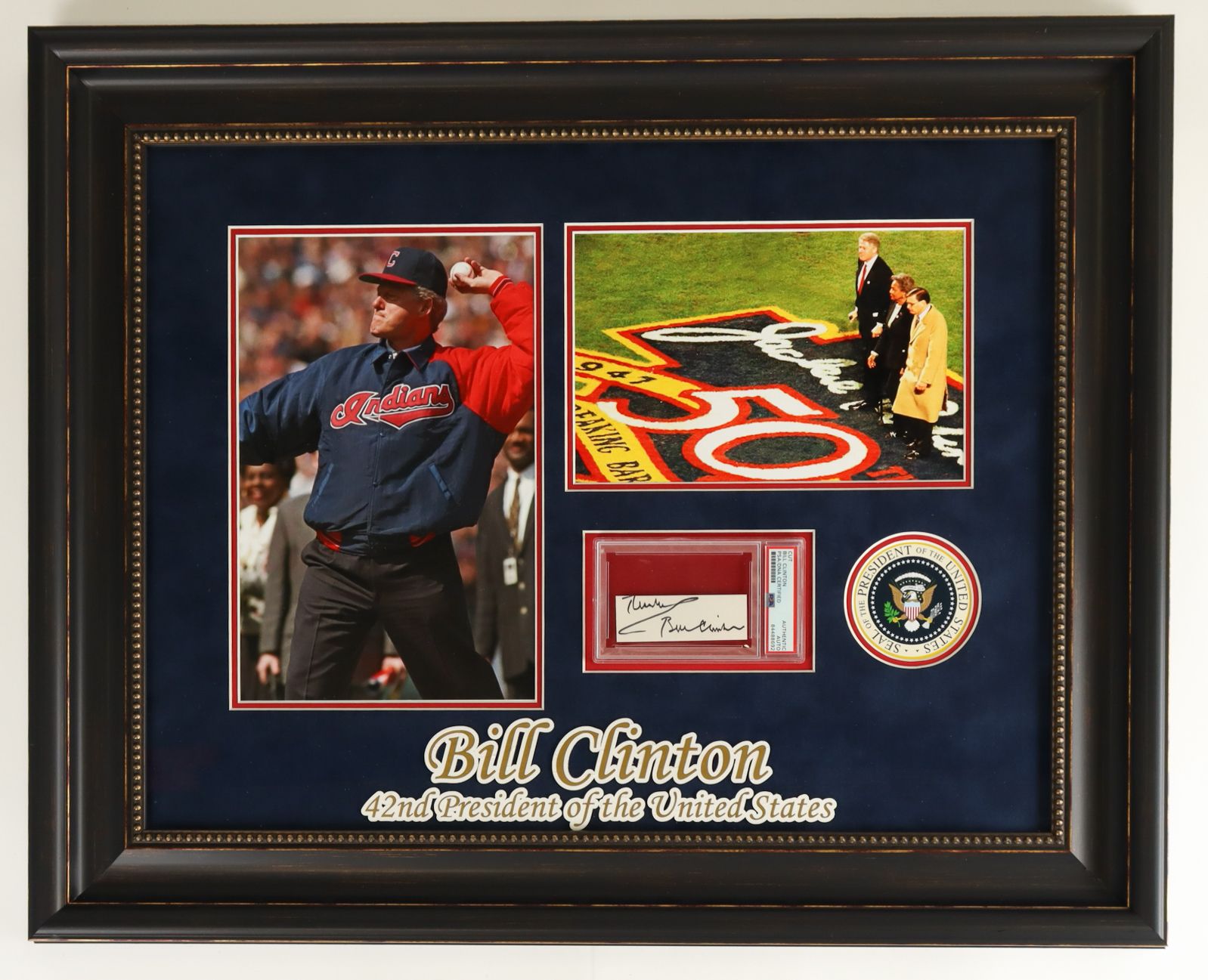 Set of (10) MLB Presidential "First Pitch" Custom Framed Cut Displays with Donald Trump, Joe Biden, Barrack Obama, Bill Clinton, Ronald Reagan (PSA)