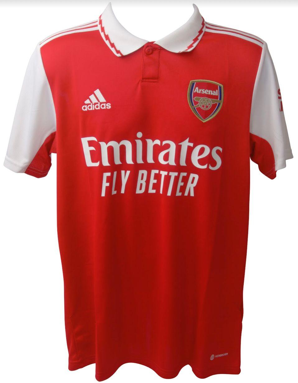 Adidas on-field style jersey. Everything is printed on, size L. Hand-signed by Saka (Arsenal F.C.).