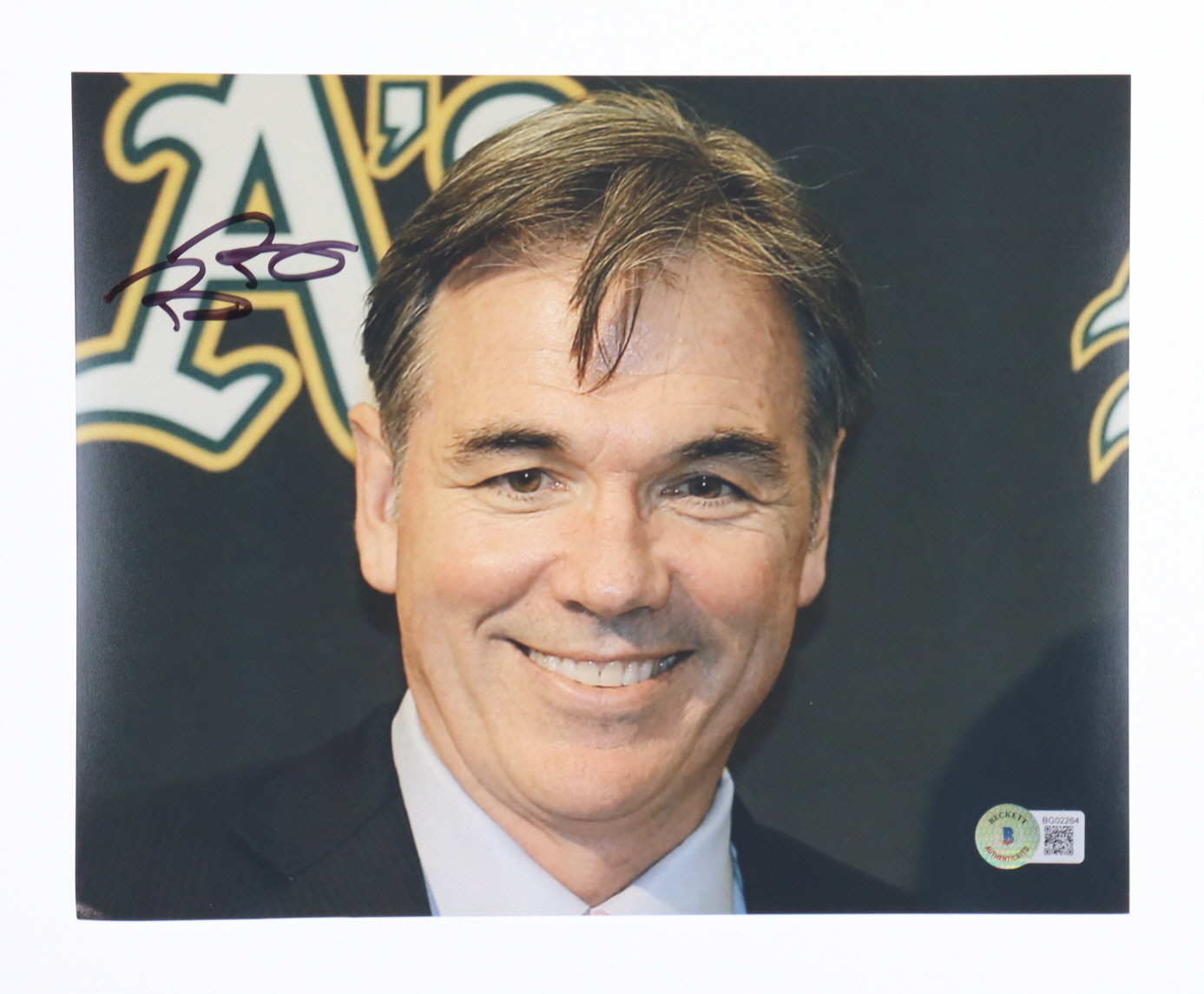 Photo measures approximately 8" x 10" in size. Hand-signed by Billy Beane.