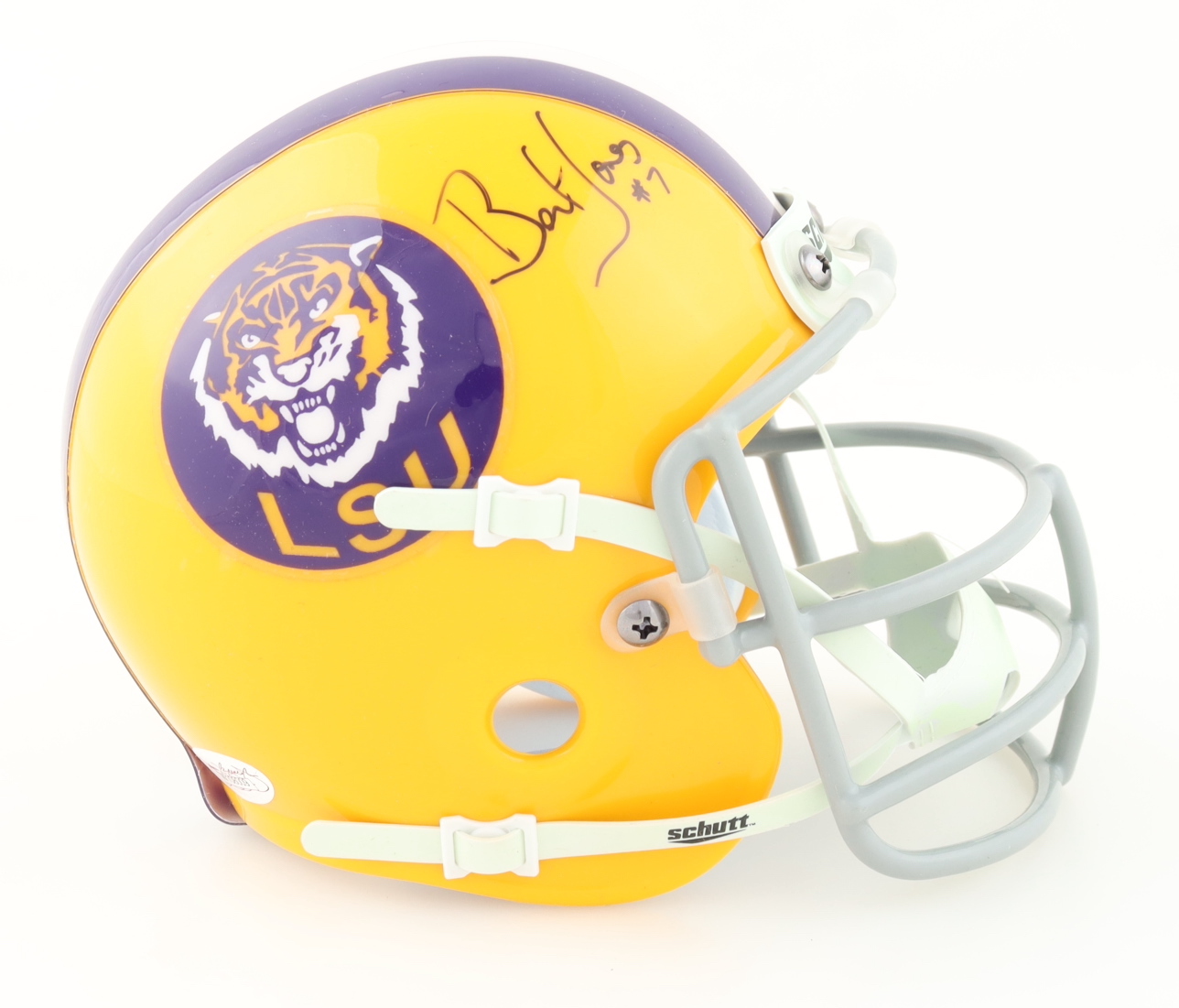 Schutt LSU Tigers mini helmet. Hand-signed by Bert Jones.