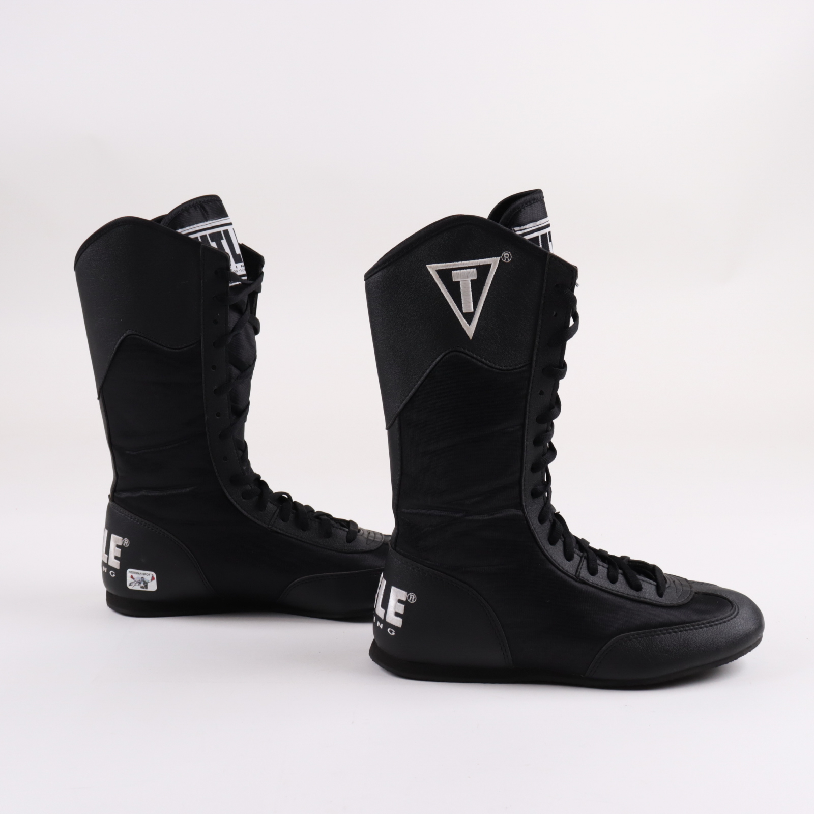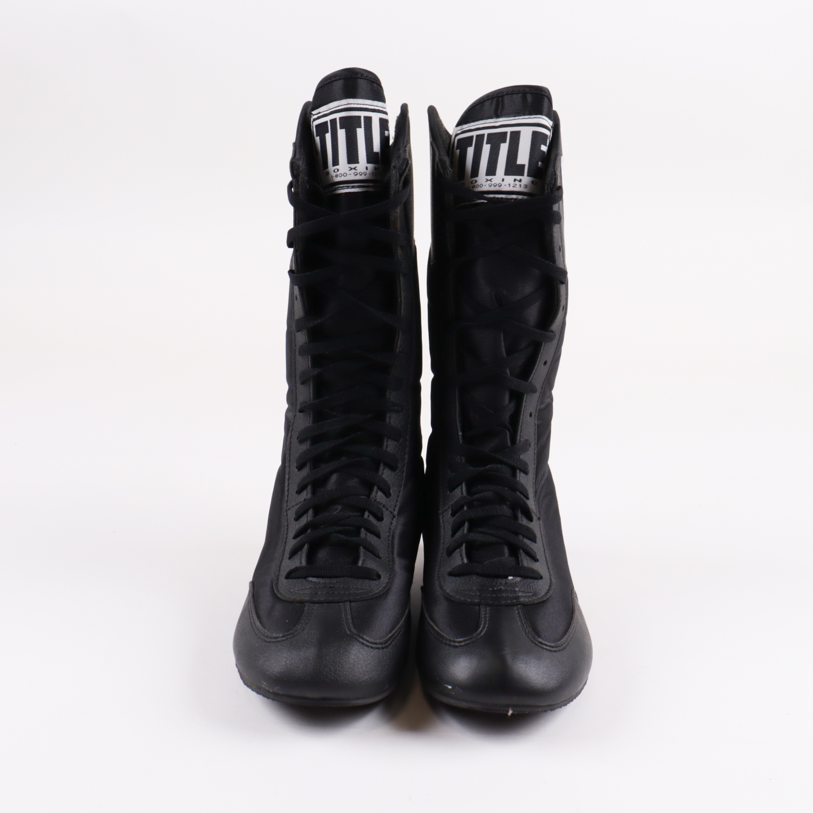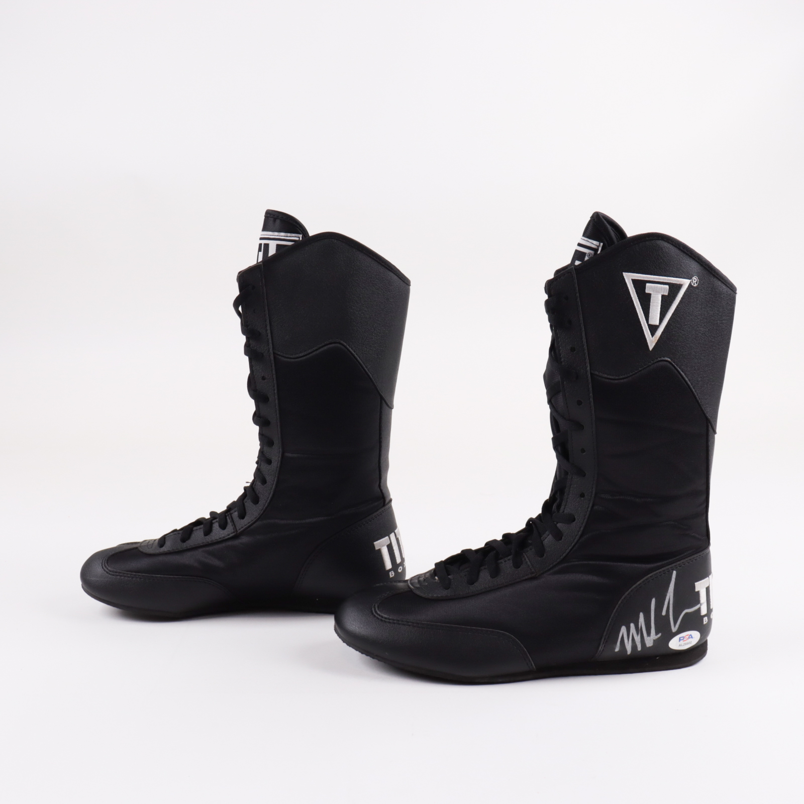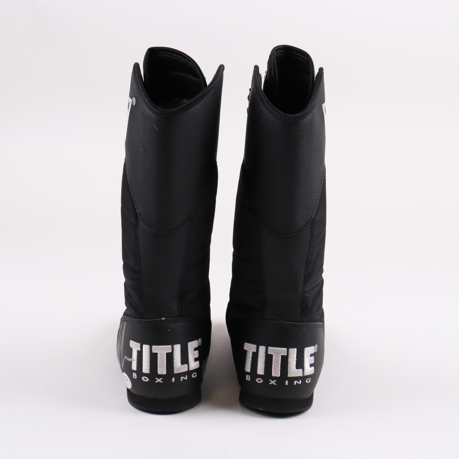 Pair of Title boxing shoes. The left shoe has been hand-signed by Mike Tyson (HOF).