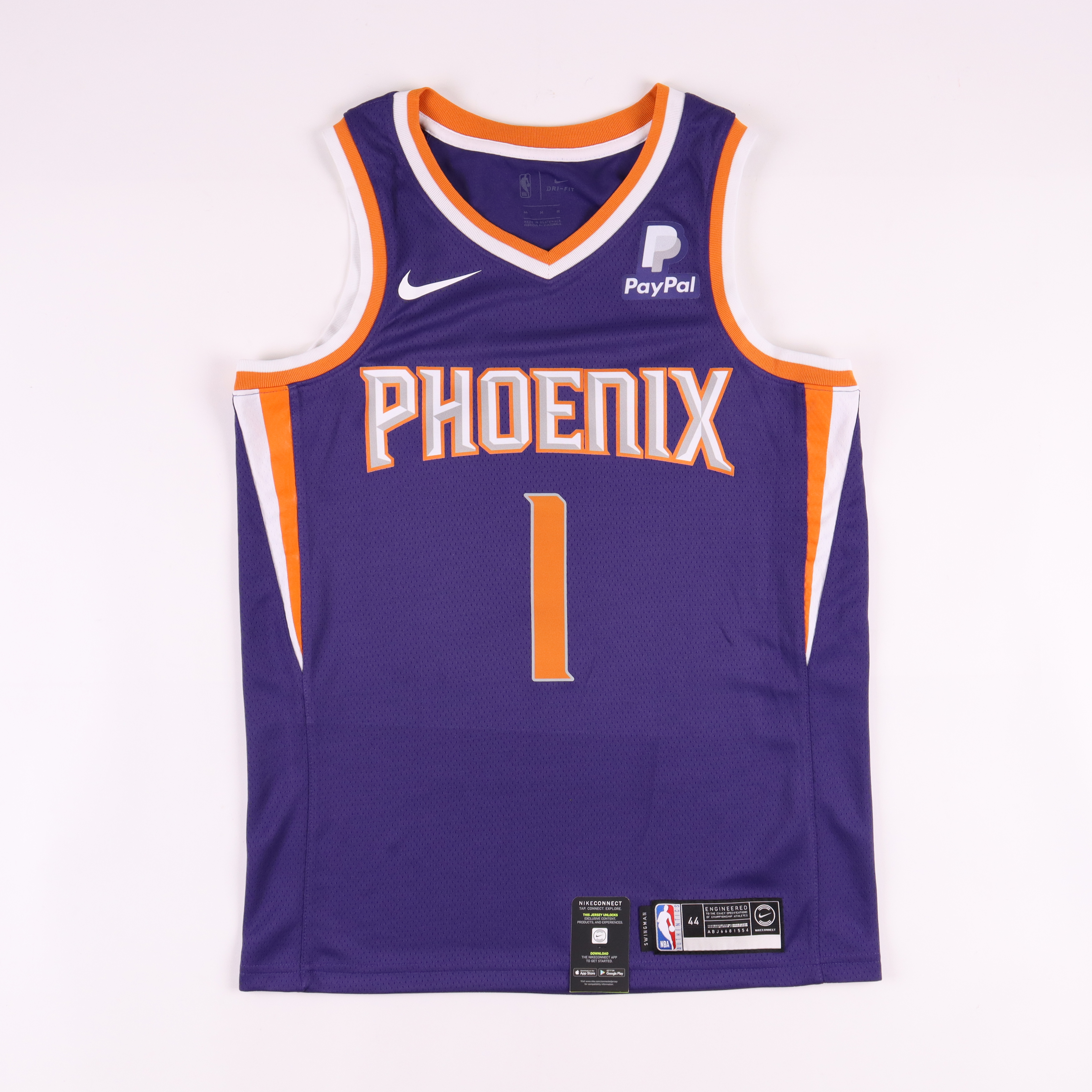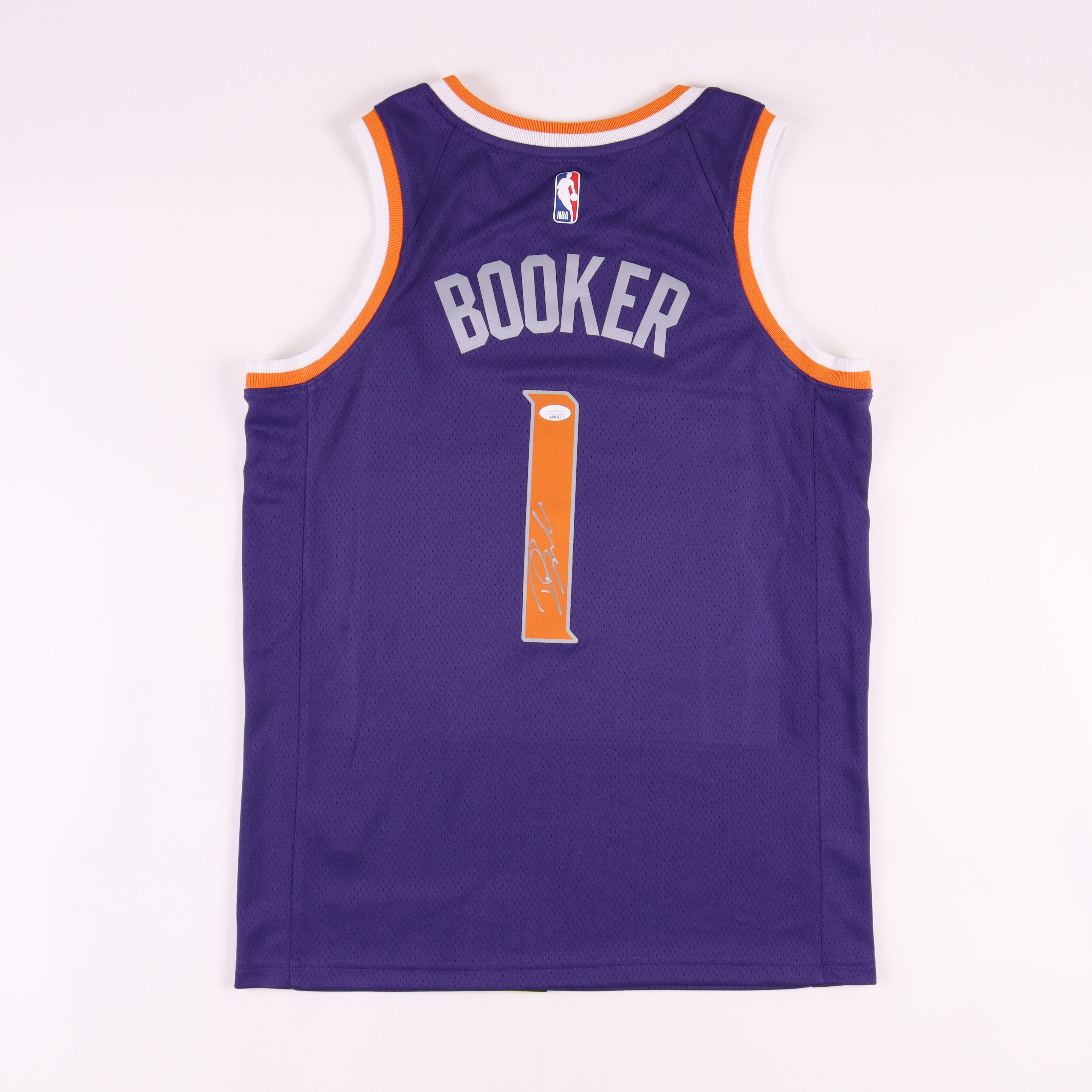 Nike on-court style jersey. Everything is printed on, size M. Hand-signed by Devin Booker (Phoenix Suns).