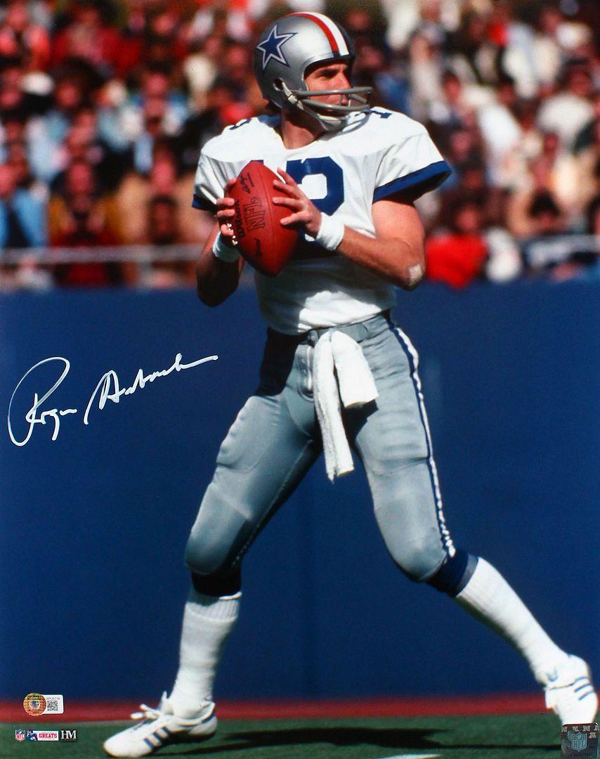 Photo measures 16" x 20" in size and has been hand-signed by Roger Staubach (Dallas Cowboys, HOF).