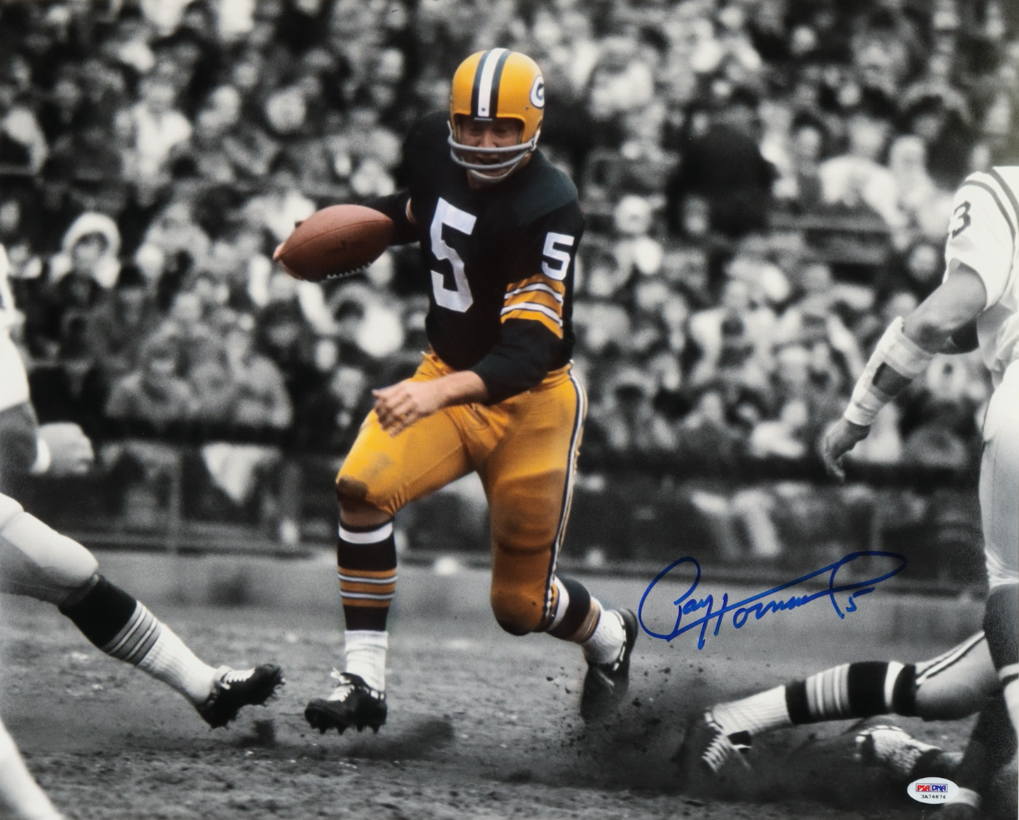 Photo measures 16" x 20" in size and has been hand-signed by Paul Hornung (D. 2020, Green Bay Packers, HOF).