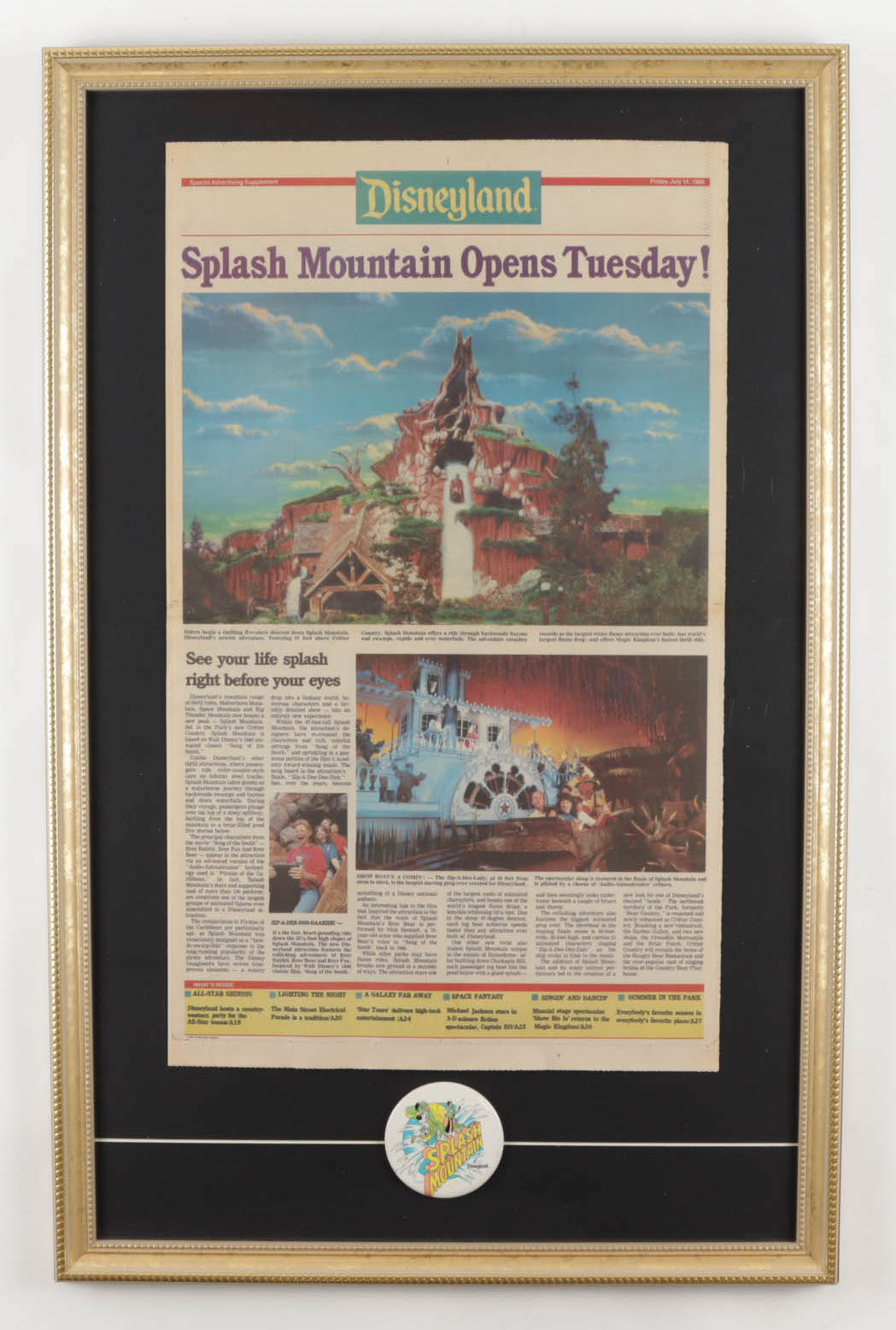 Vintage 1989 "Splash Mountain Opens Tuesday" Custom Framed Original Full Disneyland Newspaper Display with Vintage Employee Pin