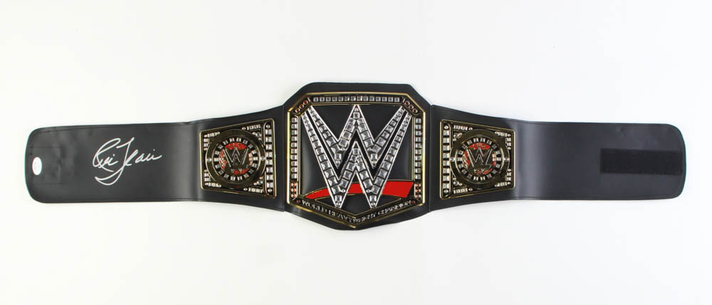 Replica WWE toy belt measures 37" and has been hand-signed by Ric Flair (HOF).
