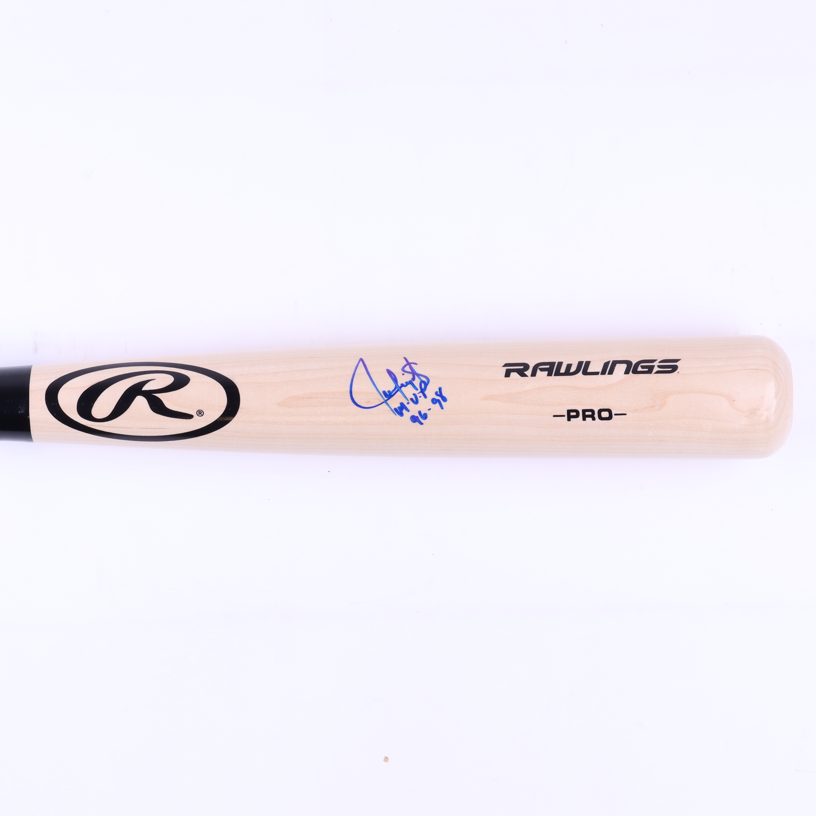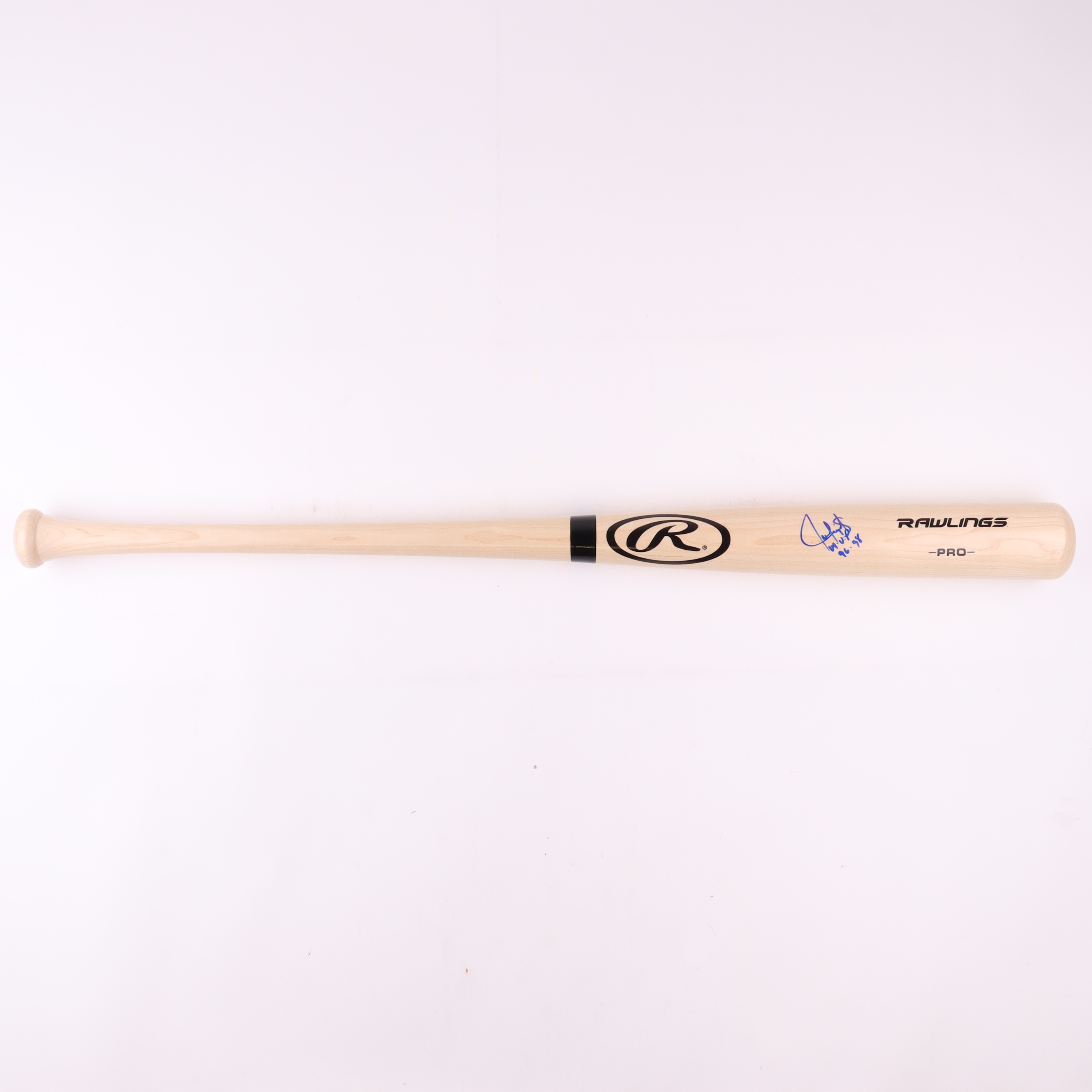 Rawlings Pro Model Baseball Bat. Hand-signed and inscribed by Juan Gonzalez (Texas Rangers).