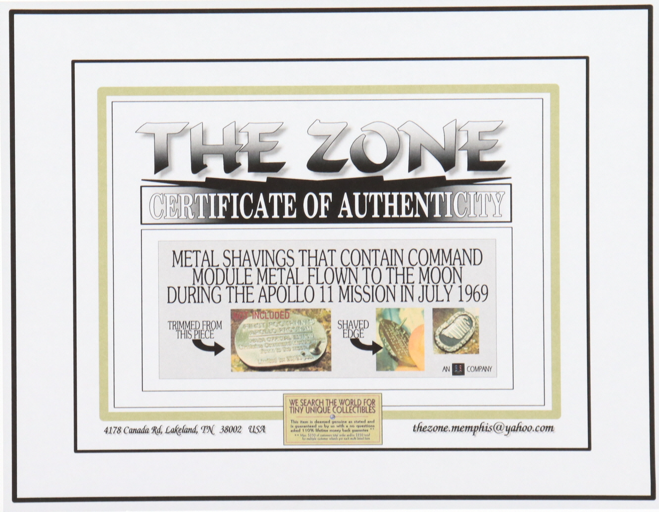 Apollo 11 "Orbiting the Moon" 6x8 Photo with Metal Shavings from Spacecraft (The Zone)