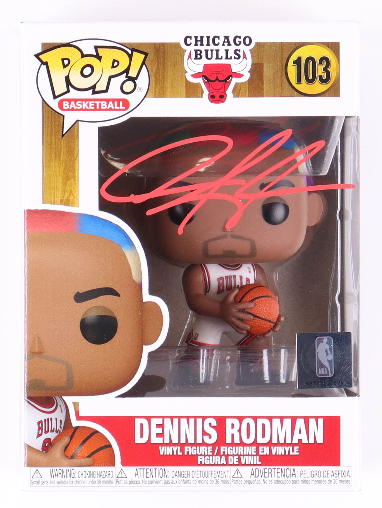Funko Pop! Vinyl figure measures approximately 4" in height and has been hand-signed on the packaging by Dennis Rodman (Chicago Bulls, HOF).
