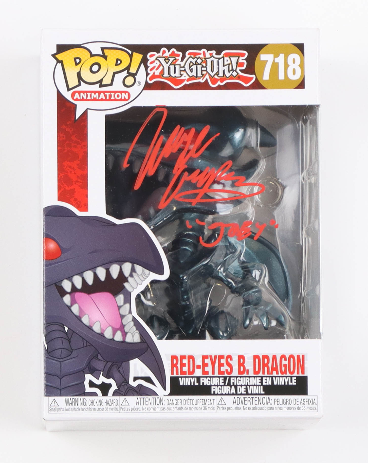 Wayne Grayson Signed "Yu-Gi-Oh!" #718 Red-Eyes B. Dragon Funko Pop! Vinyl Figure Inscribed "'Joey'" (PSA)