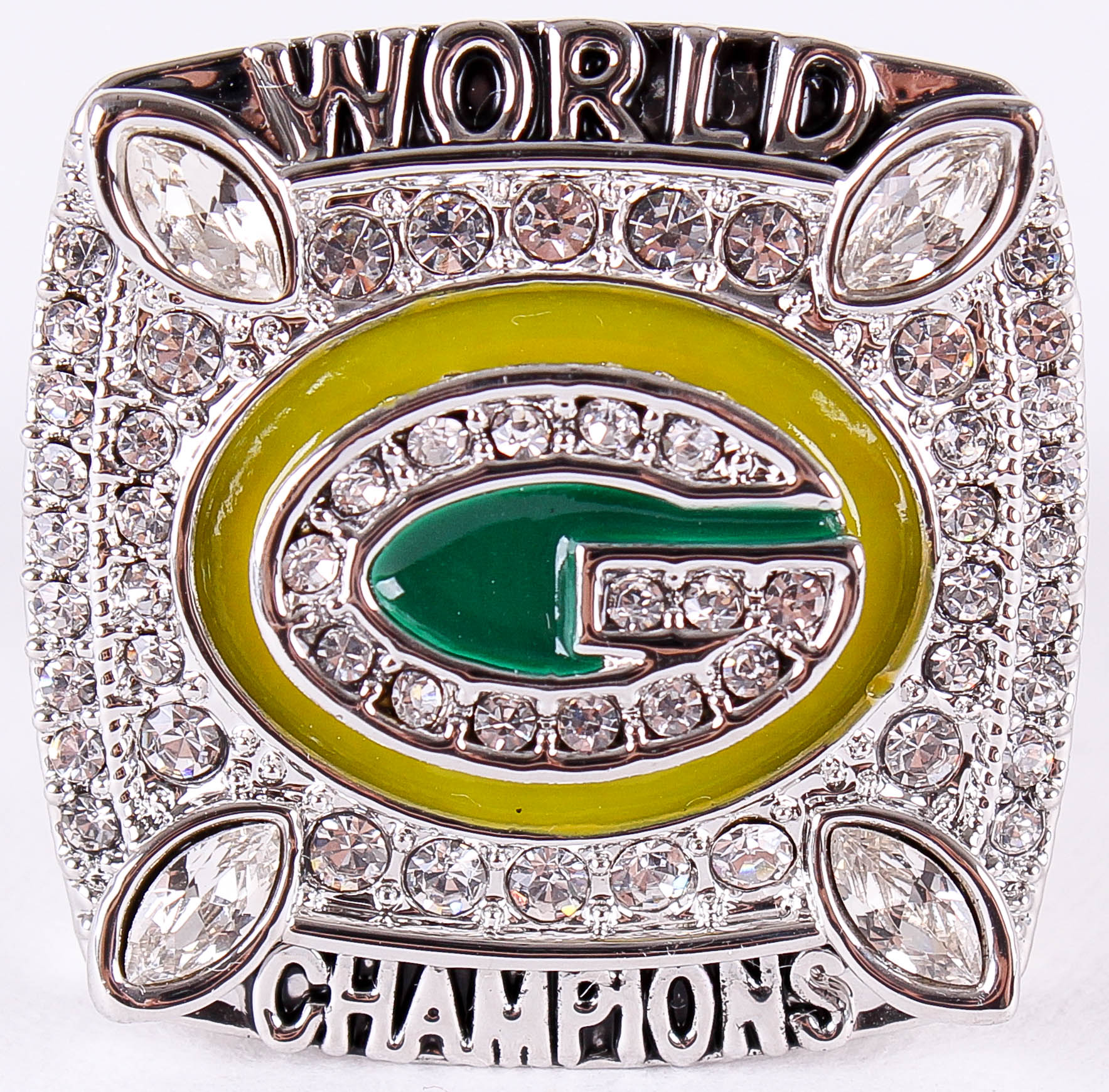 Aaron Rodgers Packers Super bowl championship replica ring. The ring has been hand crafted by professional jewelers. Made of metal alloy and clad. Size 11.