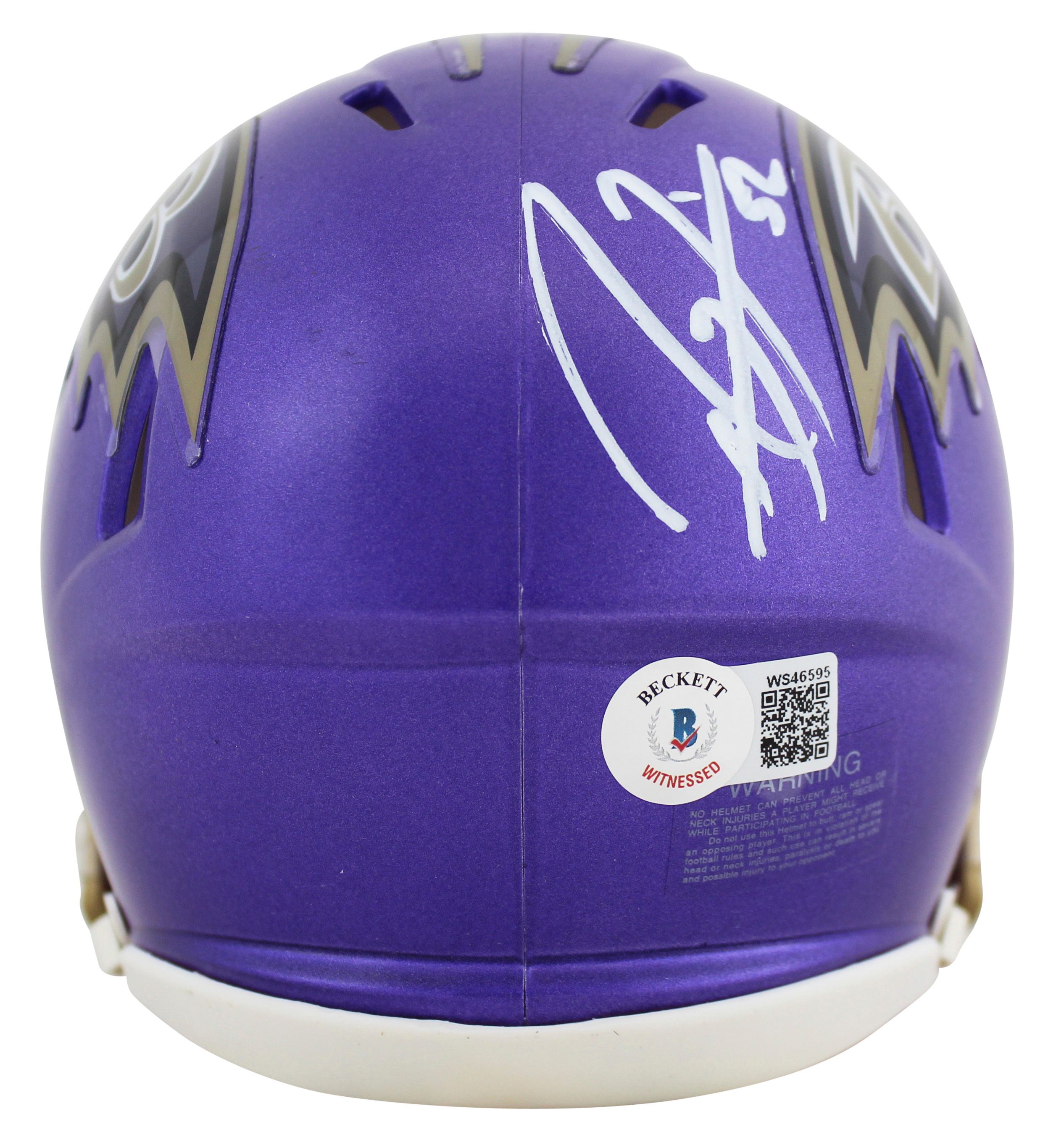 Riddell Baltimore Ravens Flash Alternate Speed mini helmet has been hand-signed by Ray Lewis (HOF).
