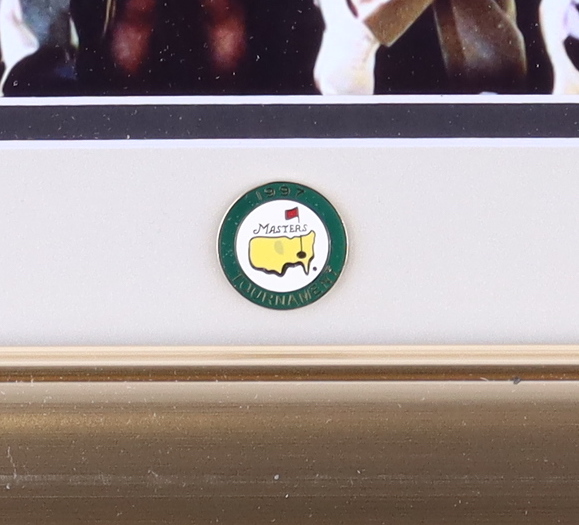 Tiger Woods, Arnold Palmer & Jack Nicklaus Custom Framed Photo Display with 1997 Masters Pin