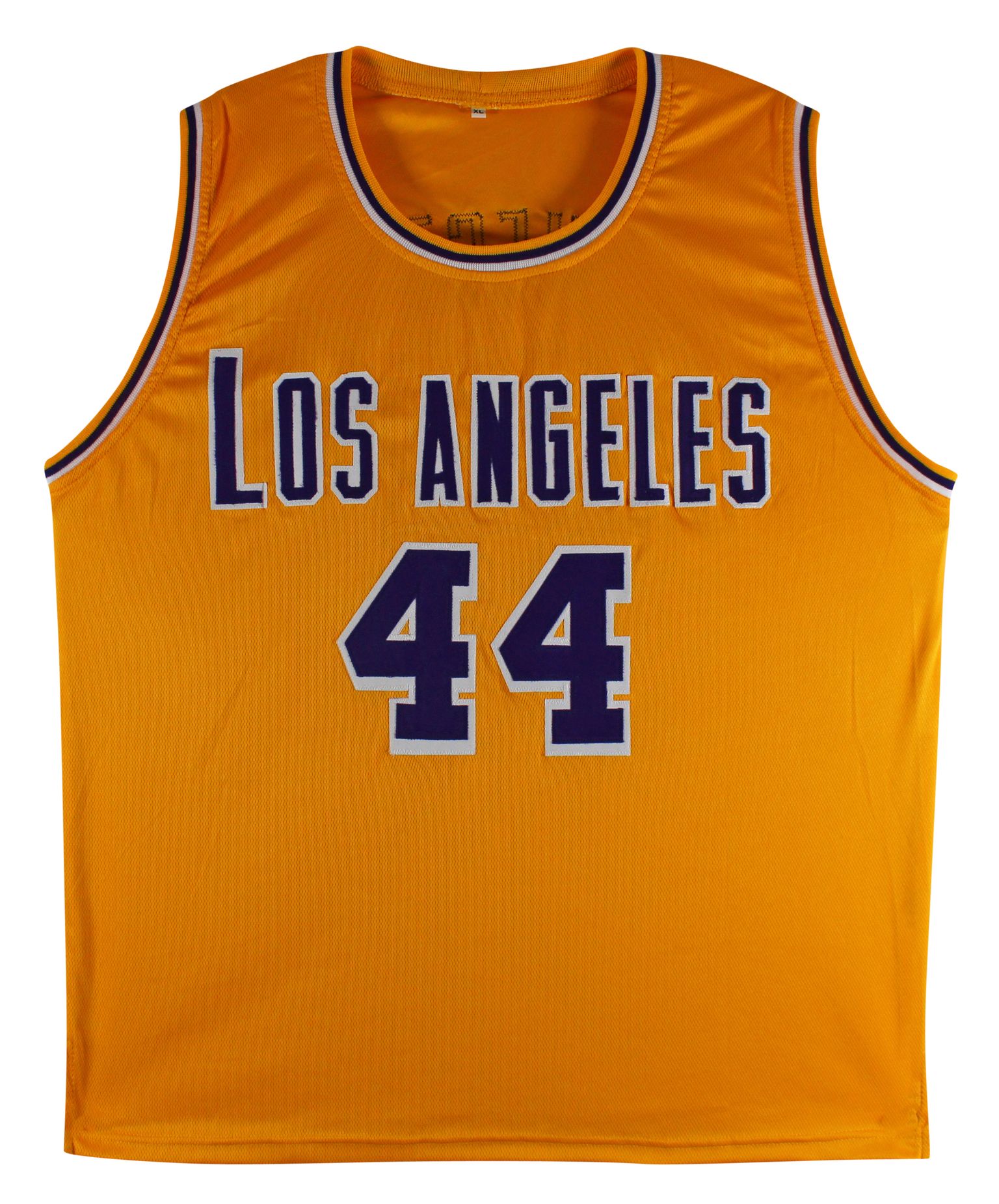 Custom on-court style jersey. Everything is sewn on, size XL. Hand-signed by Jerry West (HOF).
