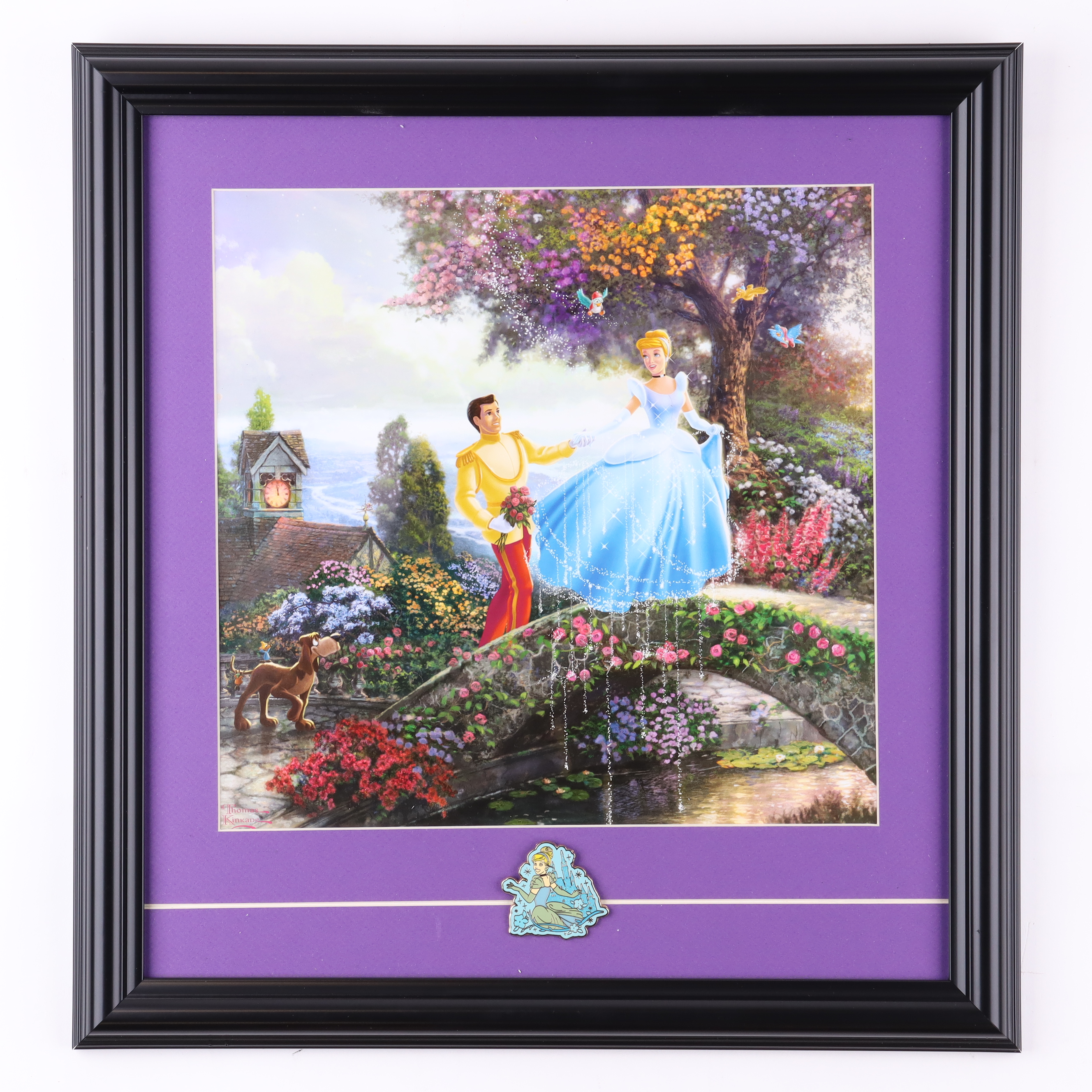 Thomas Kinkade Walt Disney's "Cinderella" Custom Framed Print Display with Cinderella Pin