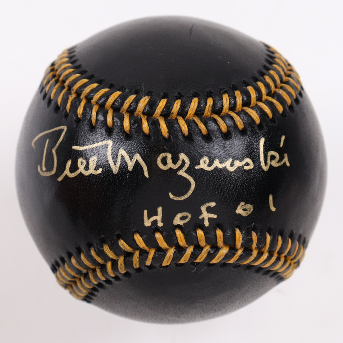 Bill Mazeroski Signed OML Black Leather Baseball Inscribed "HOF 01"(Beckett)