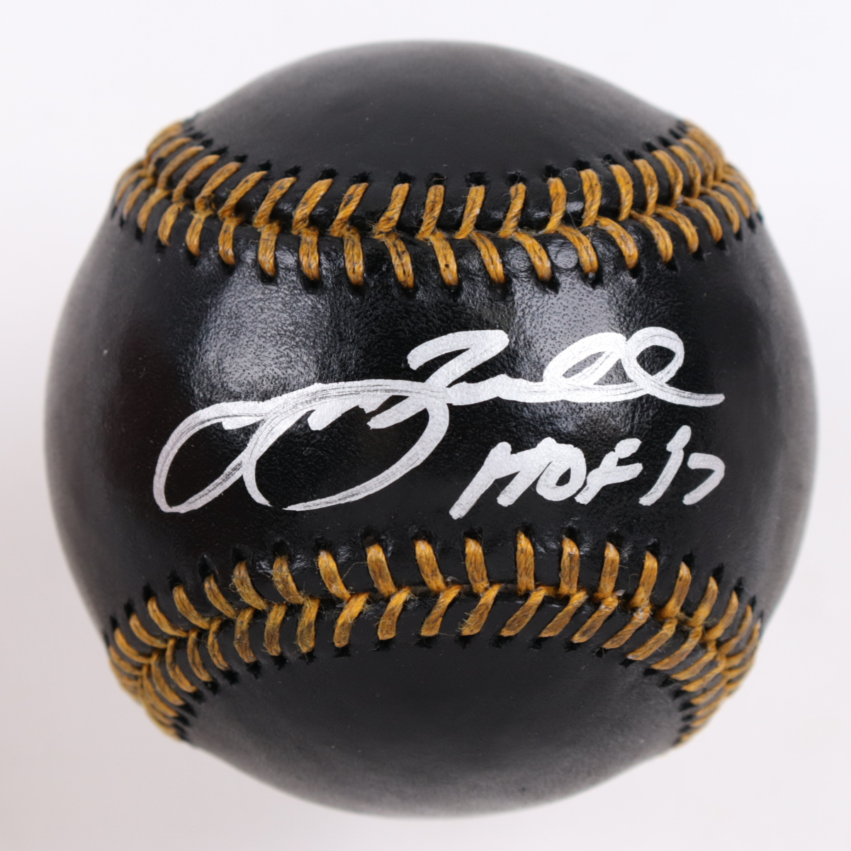 Jeff Bagwell Signed Black Leather OML Baseball Inscribed "HOF 17" (Beckett)