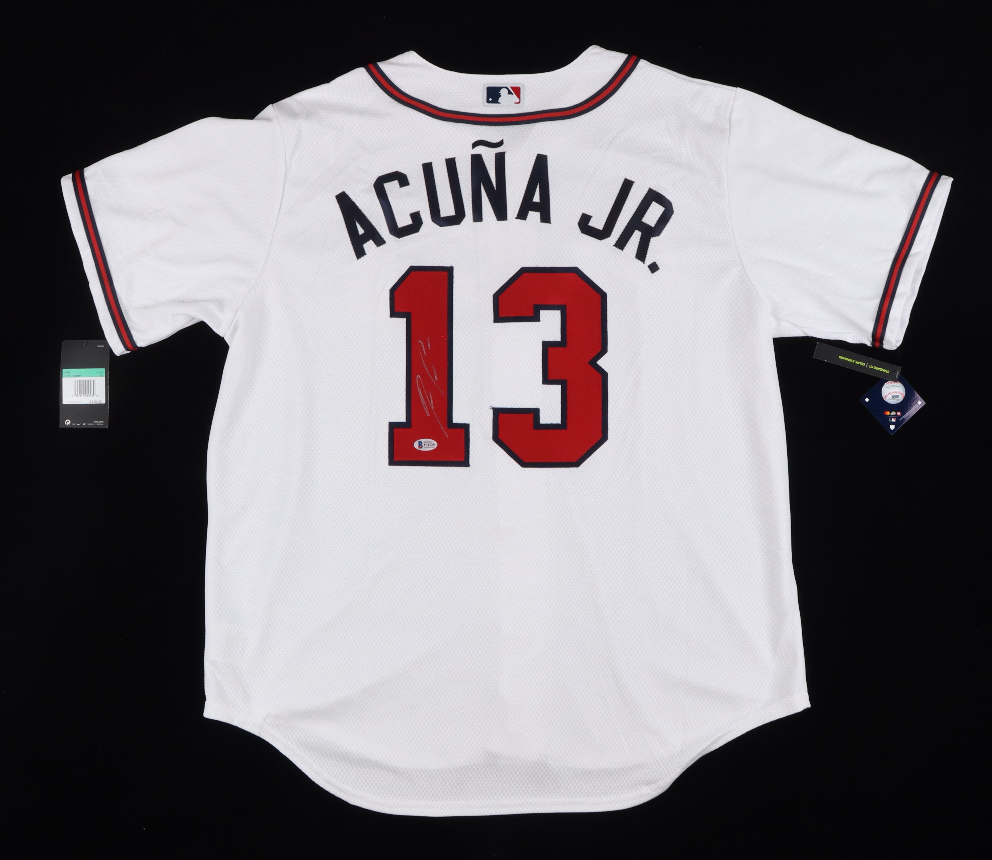 Nike on-field style jersey. Everything is sewn on, size XL. Hand-signed by Ronald Acuna Jr. (Atlanta Braves).