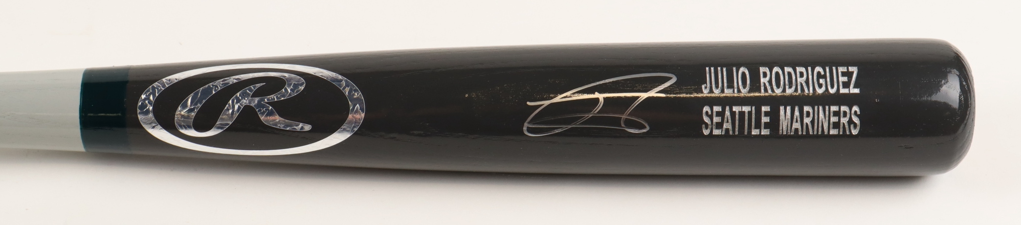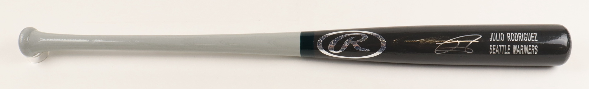 Rawlings baseball bat has been hand-signed by Julio Rodriguez (Seattle Mariners).