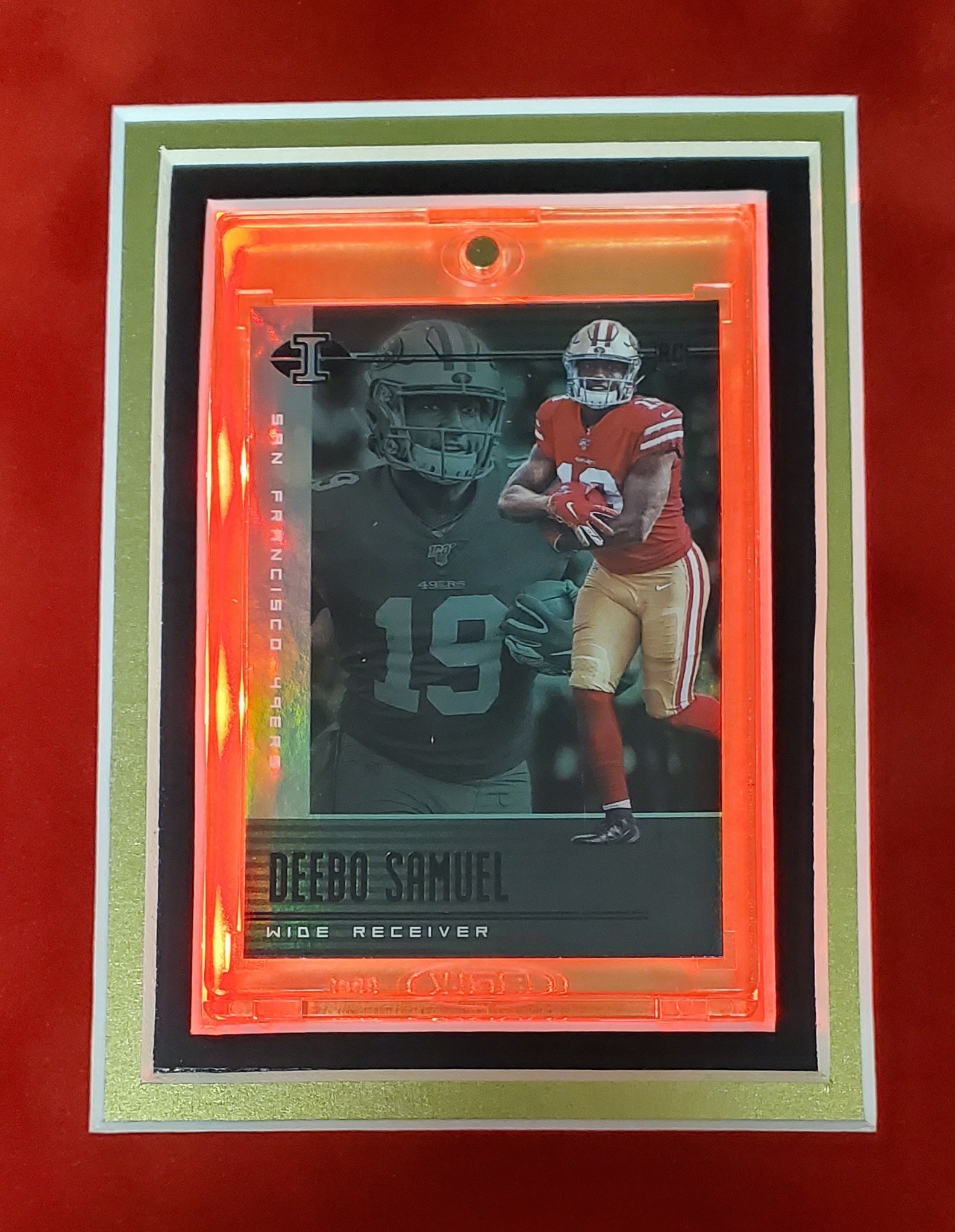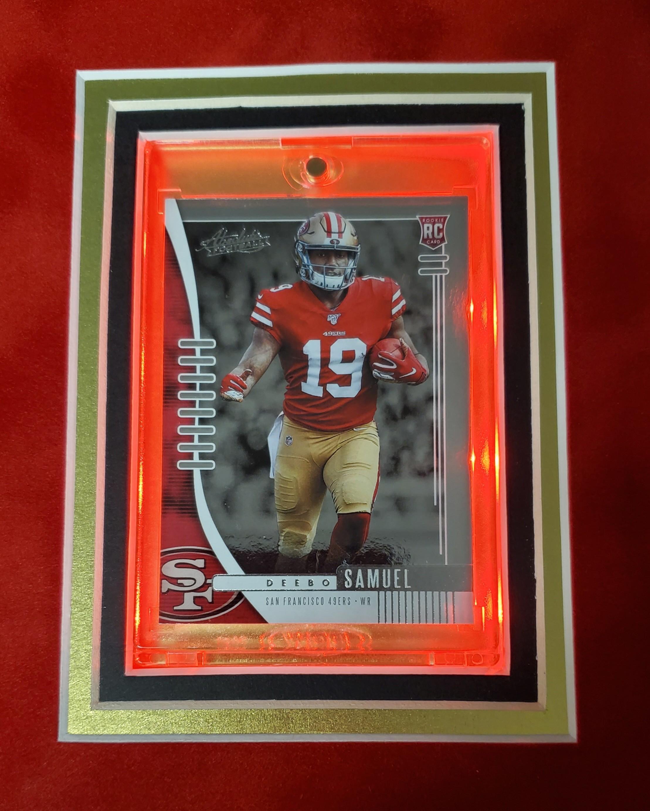 Deebo Samuel Signed Custom Framed 49ers Jersey Color LED Backlit Display with 2019 Panini Absolute #111 RC & 2019 Panini Illusions #99 RC (Fanatics)