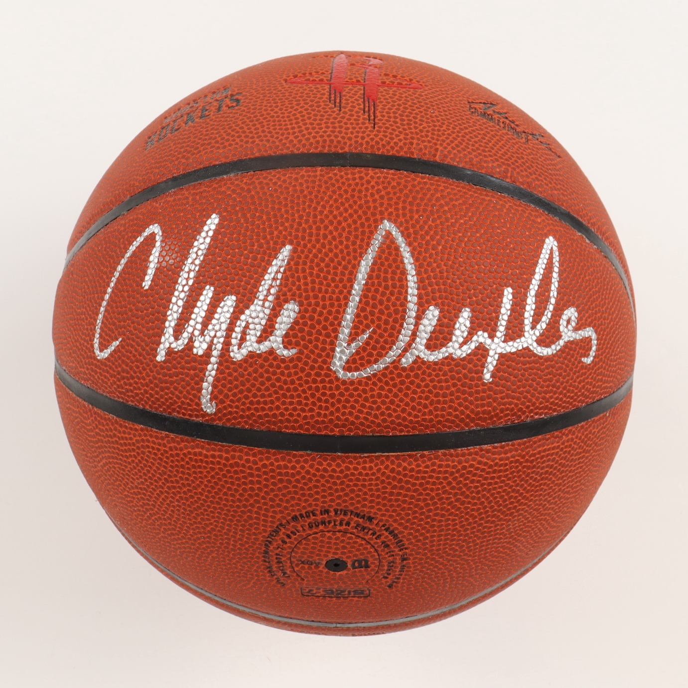 Wilson Houston Rockets logo NBA basketball has been hand-signed by Clyde Drexler (HOF).