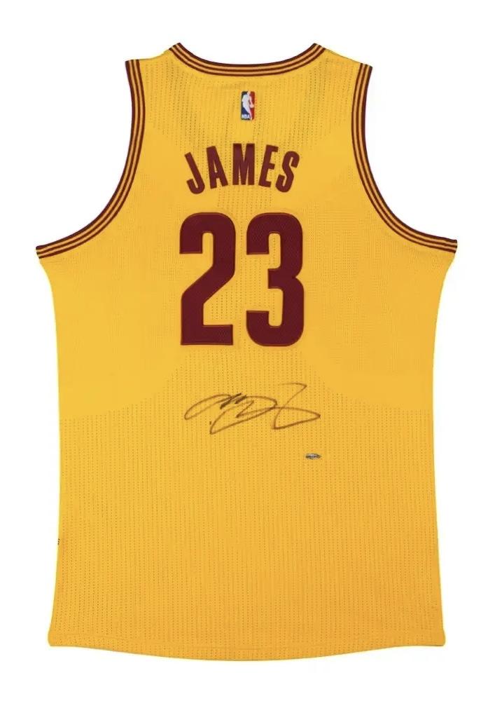 After spending his first seven NBA seasons with the Cleveland Cavaliers, LeBron James has returned to the city where his career began as the number 1 overall pick in the 2003 NBA Draft. James became one of the leagues brightest stars as a member of the Cavs, where he was able to lead his team to the 2007 NBA Finals. Now a two time NBA champion, James leads a revitalized roster that is fashioned to bring the Cleveland Cavaliers their first NBA Championship. James has signed this authentic Adidas No. 23 Cleveland Cavaliers gold (alternate) jersey in black paint pen. His signature is deemed 100% authentic by virtue of Upper Deck Authenticated's Five-Step Process. The LeBron James Signed Cleveland Alternate Jersey is gold with maroon numbers.