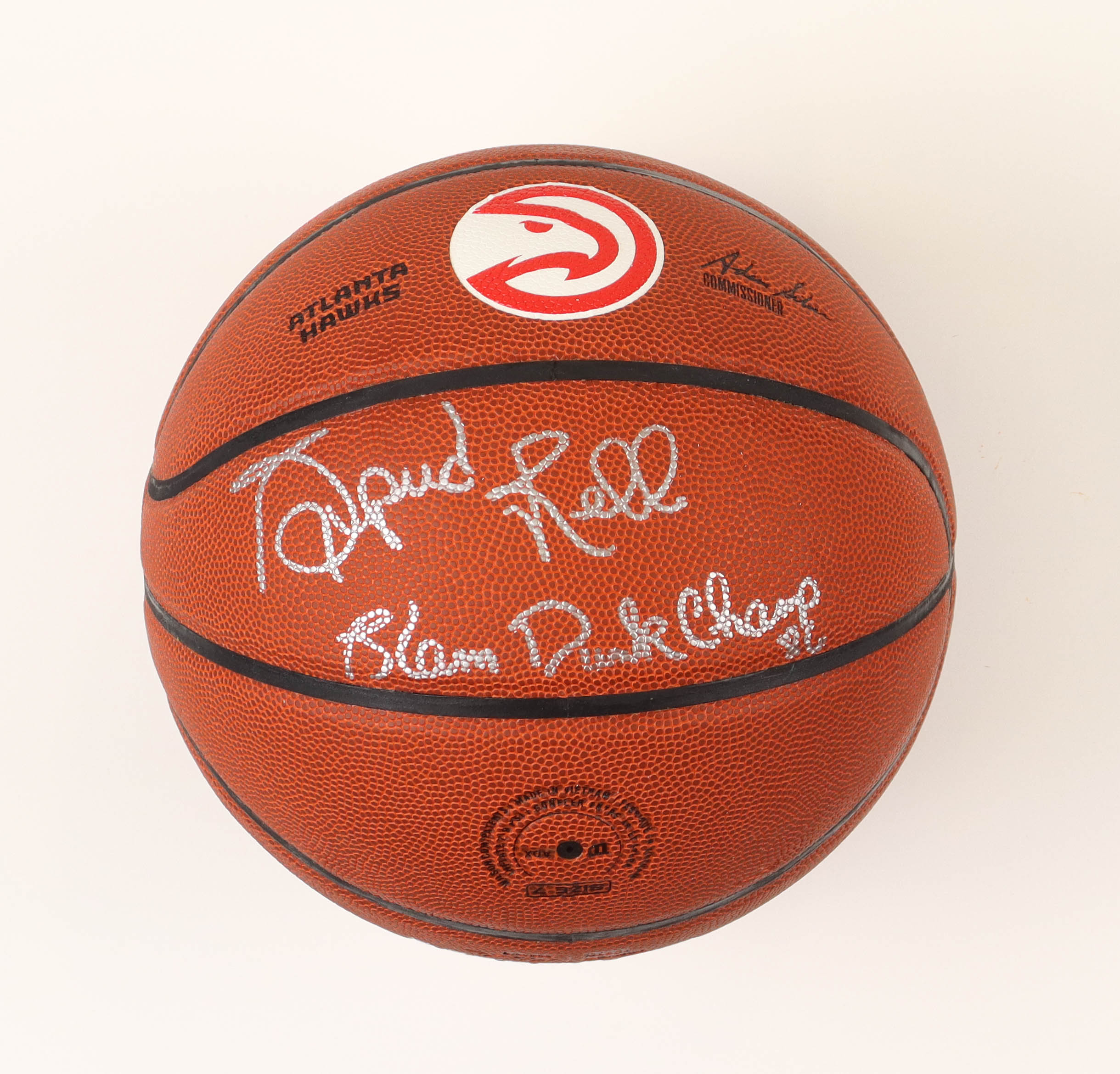 Wilson Atlanta Hawks logo NBA basketball. Hand-signed and inscribed by Spud Webb.