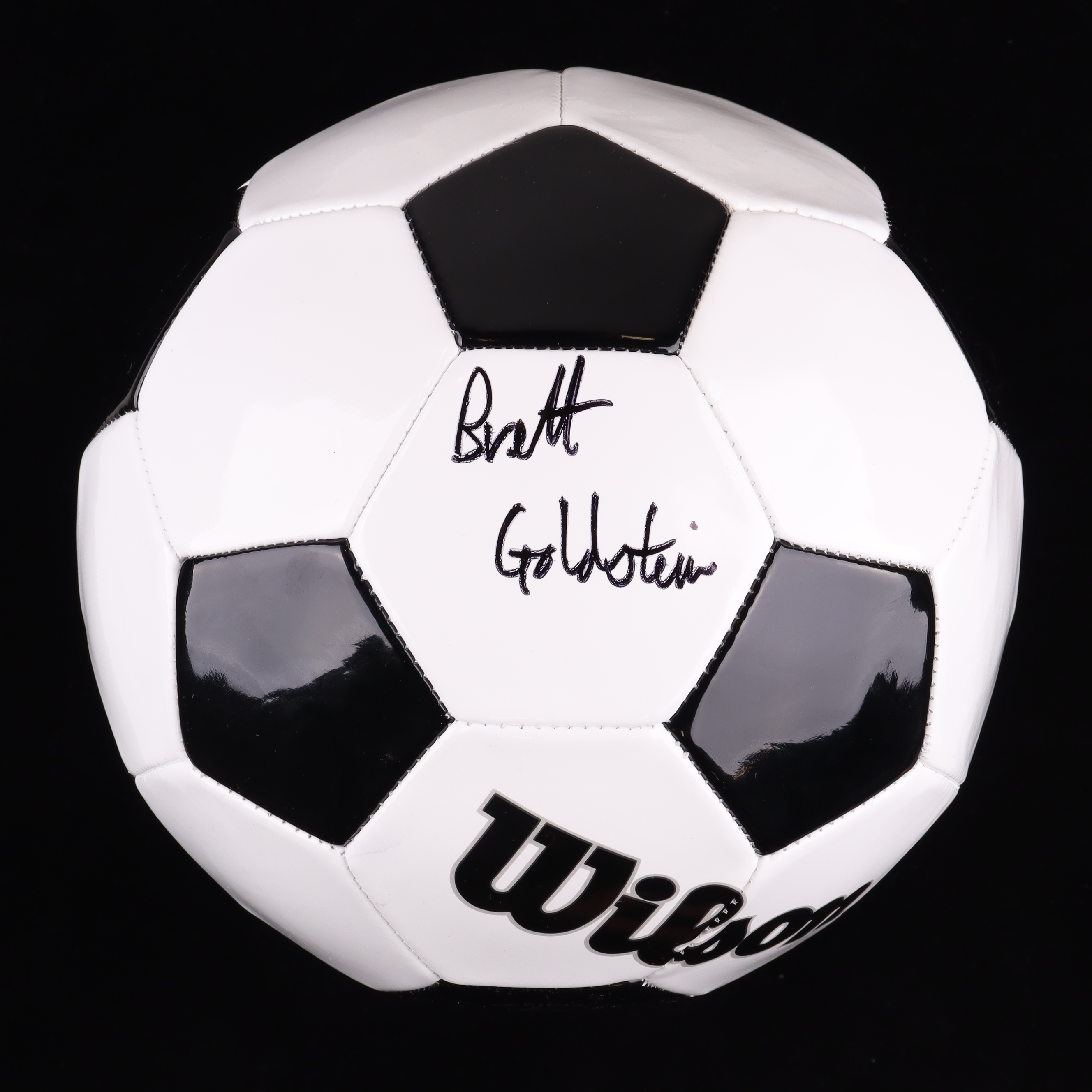 Wilson soccer ball. Hand-signed and inscribed by Brett Goldstein.